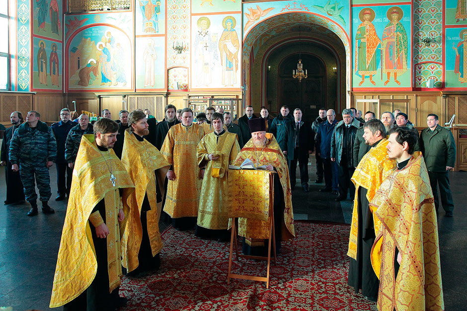 Перед началом встречи в Троицком соборе г. Щелково благочинный церквей Щелковского округа протоиерей Андрей Ковальчук в сослужении духовенства благочиния совершил молебное пение на начало всякого доброго дела. Отец благочинный поздравил военных с прошедшими праздниками, рассказал о проходящих Международных Рождественских чтениях и о положительном опыте сотрудничества с военнослужащими и правоохранительными органами, ветеранскими организациями района и города направленное, прежде всего, на нравственное, патриотическое воспитание подрастающего поколения.