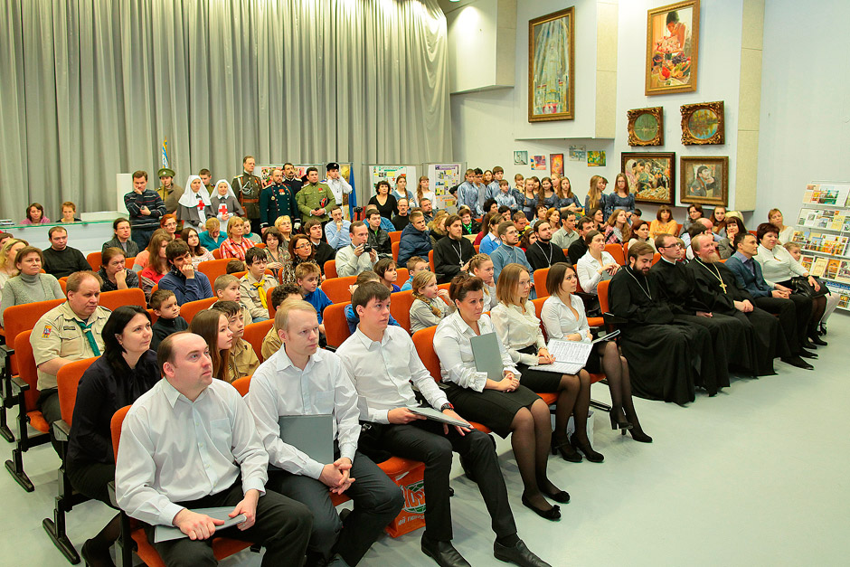 16 февраля на сцене «Белого зала» выступили молодежные творческие коллективы города и района, учащиеся православной гимназии «Ковчег» и сестры милосердия Свято-Дмитровского училища 1-ой градской больницы г. Москвы, старшеклассники Детской музыкальной школы и скауты объединенного 63-его отряда прп. Сергия Радонежского. Ведущая праздничного мероприятия – Наталья Киреева приглашала на сцену представителей и руководителей различных молодежных организаций, которые знакомили со своей работой, представляя вниманию зрителей видео презентации, стенгазеты и фильмы.