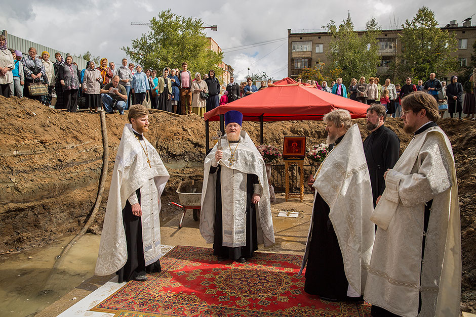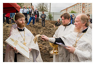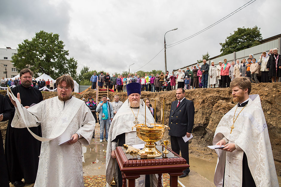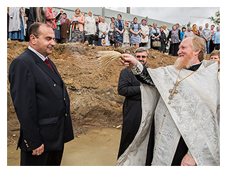 Подходившие к строительной площадке фрязинцы читали на плакате: начало строительства храма – III квартал 2014 года, окончание строительства – III квартал 2016 года. Эта надпись не могла не радовать верующие сердца фрязинцев. Некоторые так и говорили: «Скорее бы у нас был храм!». Уже на сегодняшнем молебне было очевидно, что существует дружный и крепкий приход, что у настоятеля о. Дмитрия есть надежные помощники.