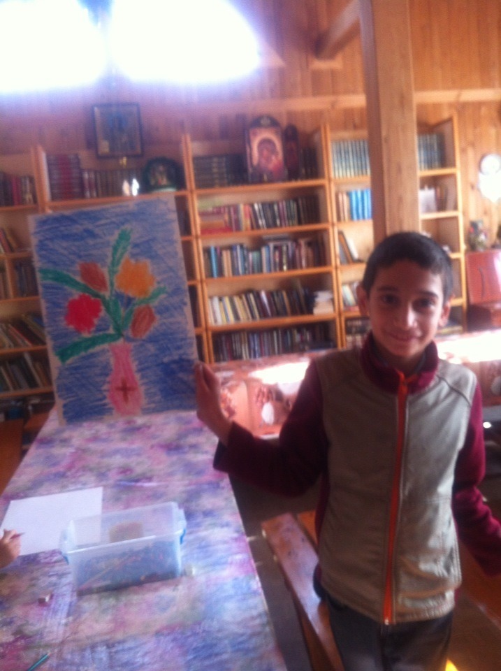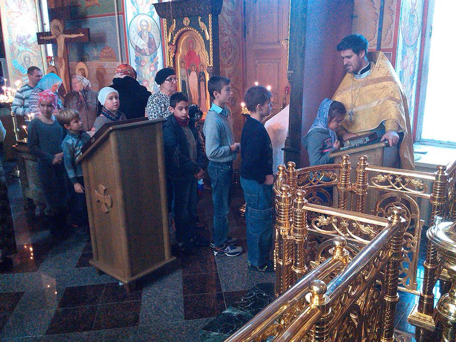 26 октября Сергиевскую Церковь д. Алмазово посетили воспитанники расположенной неподалеку Алмазовской школы-интерната. На Божественной литургии ребята исповедовались и причащались Святых Христовых Таин, а затем вместе с учениками воскресной школы приняли участие в открытом уроке. Занятие было посвящено празднику Иверской иконы Божией Матери. Учительница побеседовала с ребятами о событиях, связанных с этой иконой. На занятии присутствовал настоятель храма священник Илия Плешаков и клирик храма священник Кирилл Серышев. Они побеседовали с ребятами и похвалили их за интересные рисунки. Каждый получил в подарок книжки-раскраски. По окончании занятия беседа продолжилась за чашкой чая.