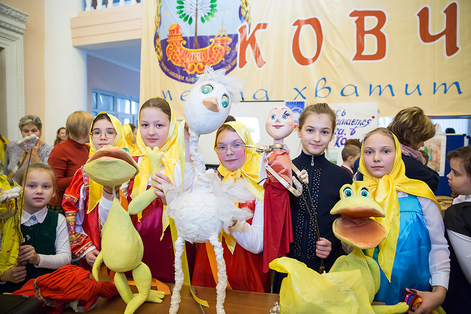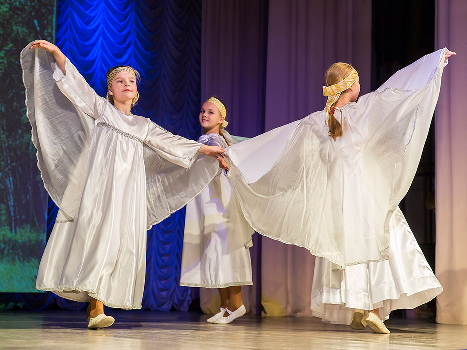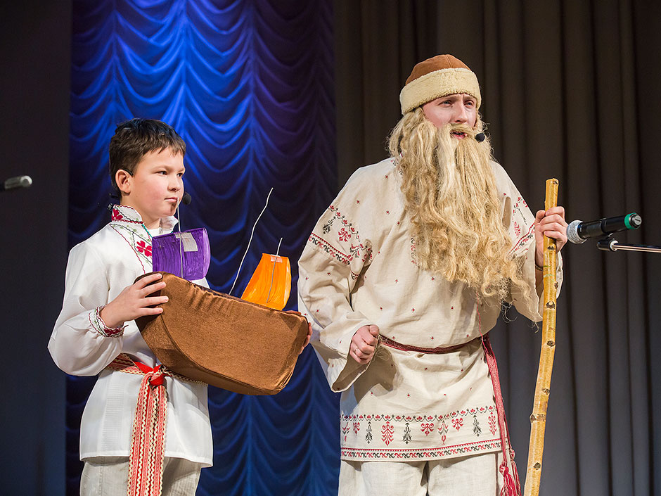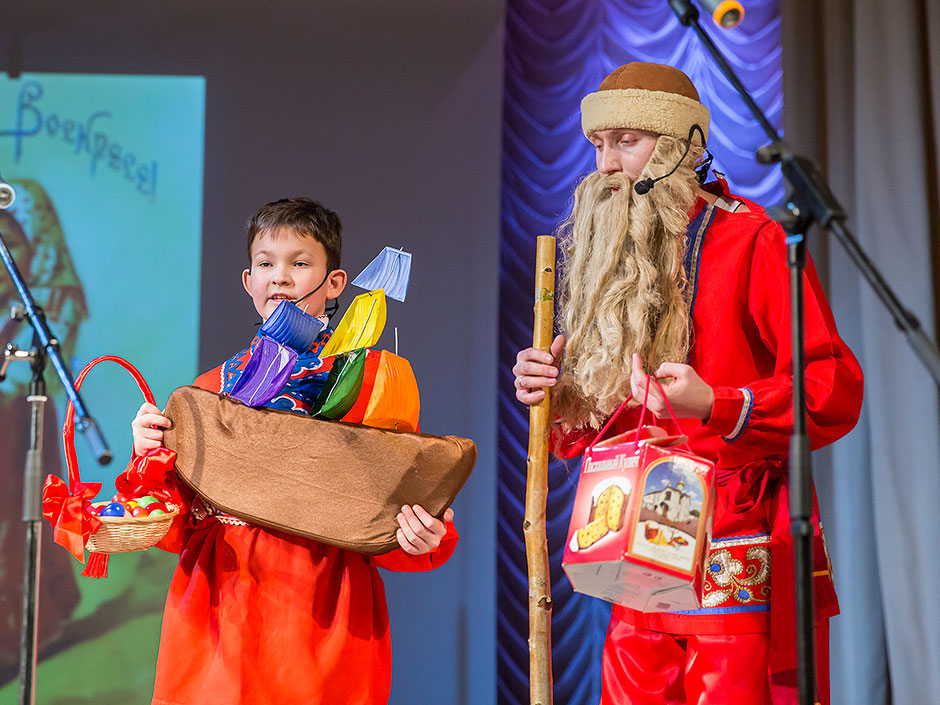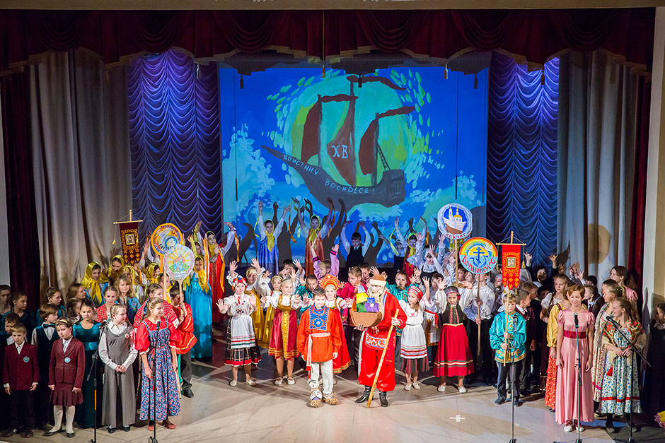 После дружной совместной трапезы ковчеговцы направились в Щелковский районный культурный комплекс, где состоялась вторая часть праздника. В фойе Дворца культуры были развернуты выставки прикладного искусства, гимназисты проводили мастер-классы и знакомили гостей праздника со своим творчеством, рассказывали о своих увлечениях, наглядно показывая как разнообразна и интересна их жизнь в «Ковчеге». Но зазвучала музыка и всех пригласили в зал – на сцене начался праздник, который подготовили гимназисты и педагоги, целое театральное действо, где главные герои постановки – мальчик и его дед – шли паломниками по Подмосковной земле, знакомясь с ее святынями и посещая храмы в великие церковные праздники - Святителя Николая в Никольском храме с. Полтеево, Преображения Господня в Преображенском храме г. Балашиха и в Преображенском храме г. Королев, Рождество Богородицы в Богородицерождественском храме с. Анискино, Рождество Христово – в Тихвинском храме с. Душоново, Воскресение Господне – в Троицком соборе г. Щелково. Во всех этих храмах открыты отделения православной гимназии «Ковчег». И каждое отделение встречало героев театральной постановки песнями, танцами, рассказами о своем родном храме и подарками.
