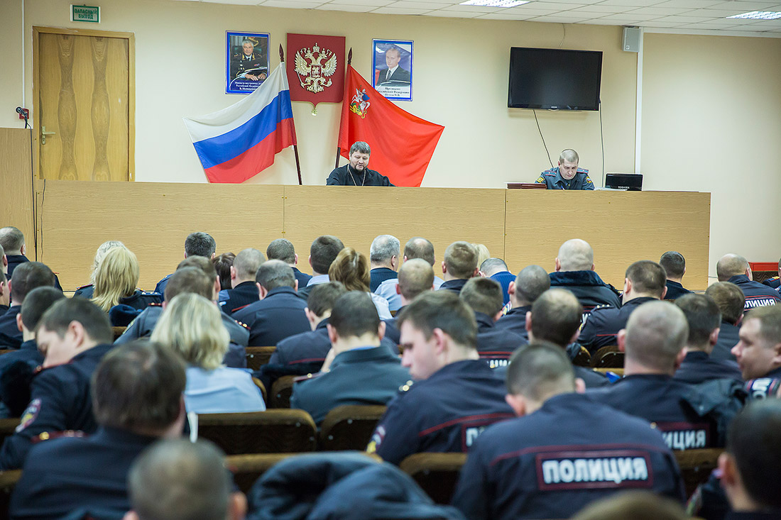 1 апреля ответственный отдела по взаимодействию с Вооруженными силами и правоохранительными учреждениями Щелковского благочиния, настоятель Знаменского храма г. Щелково священник Олег Атласов провел беседу с личным составом Управления внутренних дел Щелковского района по Московской области.