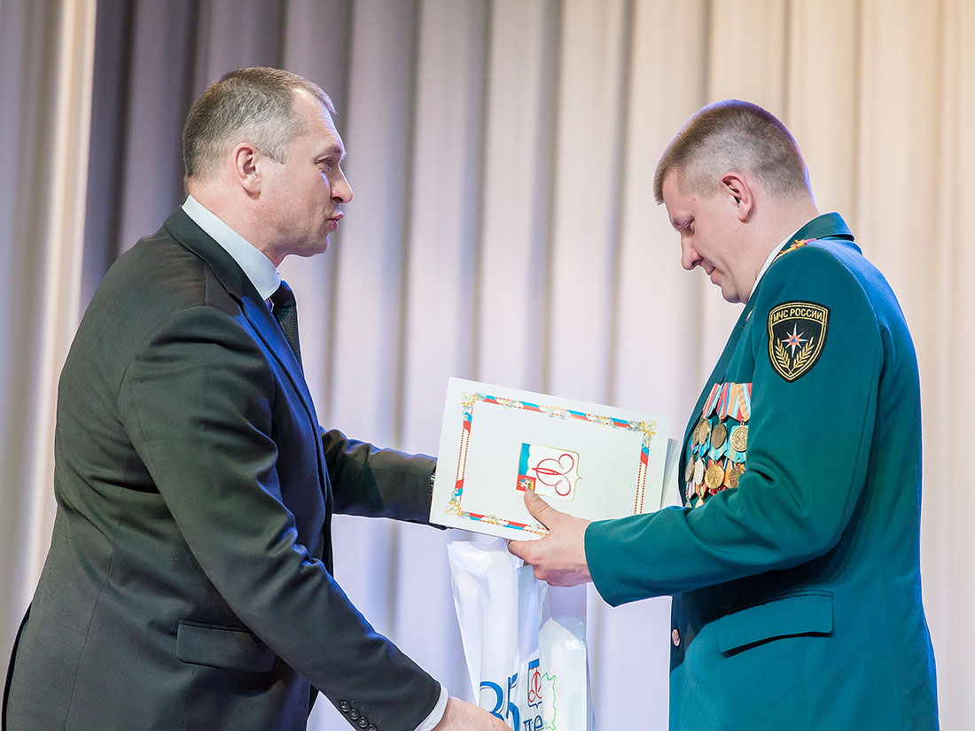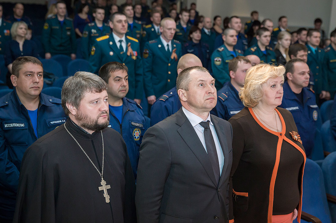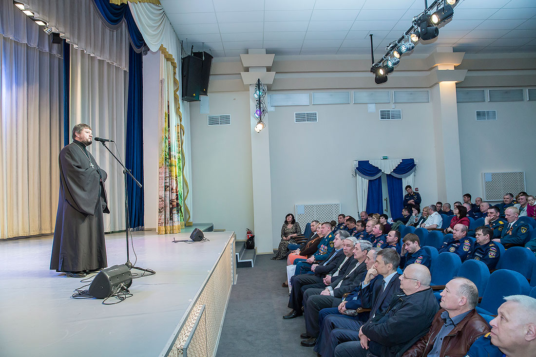 В этот день в культурном комплексе «Славия» прошел праздничный вечер. Щелковских брандмейстеров прибыли поздравить Глава Щёлковского муниципального района Н.В. Суровцева, заместитель руководителя администрации Щёлковского муниципального района Е.Н. Питеримов, начальник Щёлковского гарнизона пожарной охраны подполковник внутренний службы В.И. Никонов. От имени духовенства сотрудников пожарной охраны приветствовал ответственный отдела по взаимодействию с Вооруженными силами и правоохранительными учреждениями священник Олег Атласов. Батюшка передал всем собравшимся благословение благочинного Щелковского округа протоиерея Андрея Ковальчука; в своем слове отец Олег обратил внимание на важность профессии пожарного и необходимости постоянного совершенствования на выбранном поприще. В конце своего слова отец Олег поздравил всех собравшихся с праздником Светлого Христова Воскресения и с наступающим 70-летним юбилеем Победы в Великой Отечественной войне.