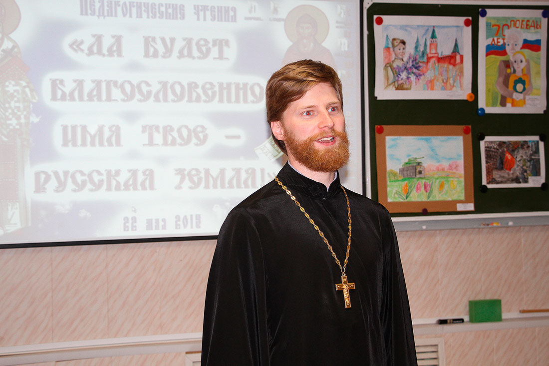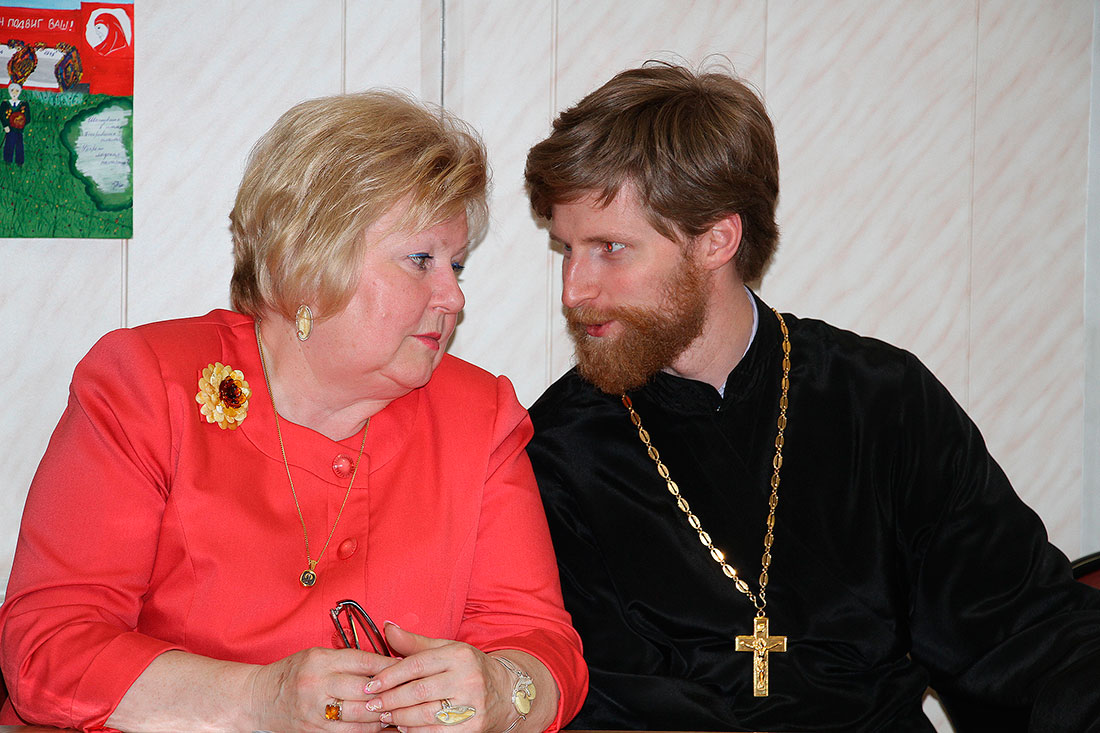 В содержательном докладе о. Димитрия Поповского «От Великого князя Владимира к Великой Победе» была затронута тема воспитания подрастающего поколения в традициях православной веры и преодоления проблем, возникающих в современной среде при воспитании детей.