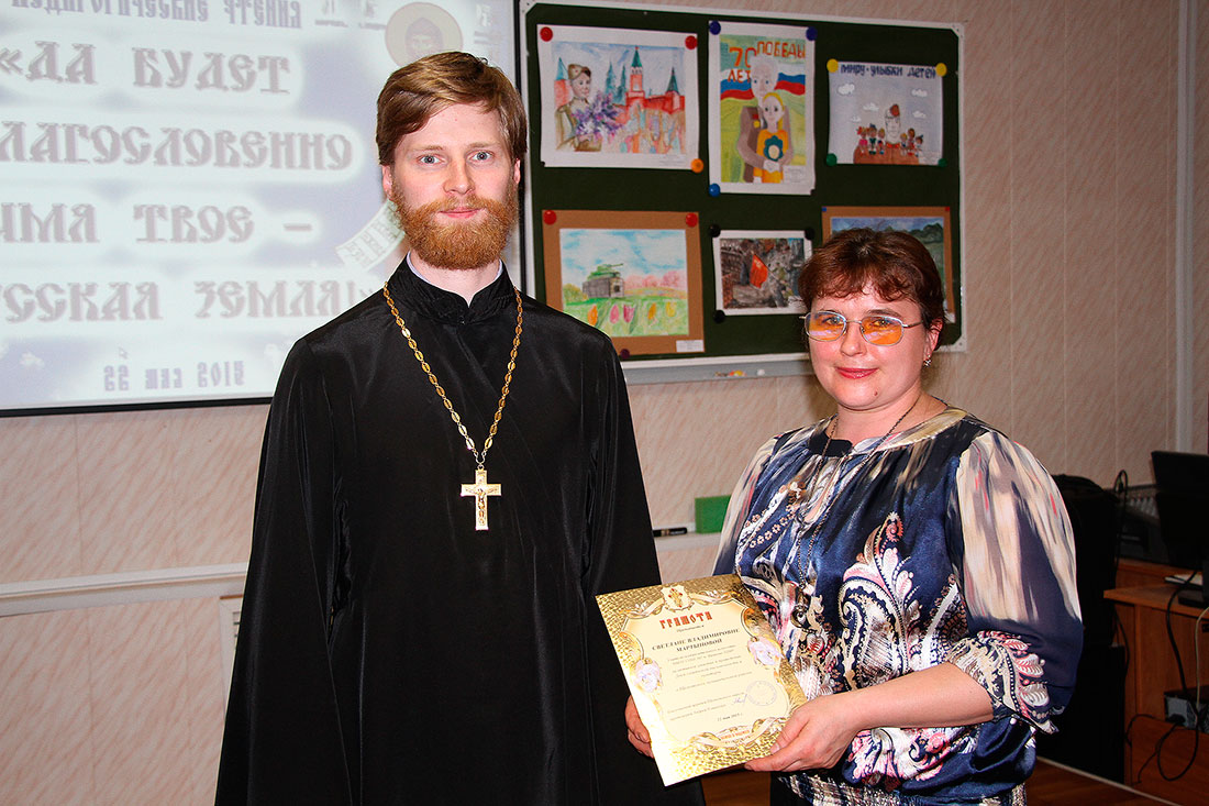 «Самая чистая и светлая любовь – это любовь к матери и Родине. И мы благодарны великим равноапостольным братьям Кириллу и Мефодию, ведь без нашего языка не было бы ни истории, ни одной великой даты, ни одного великого имени. И мы всегда будем помнить о тех, кто подарил нам счастливую мирную жизнь», - сказала в заключении директор Учебно-методического образовательного центра и ведущая мероприятия Н.М. Гуськова.