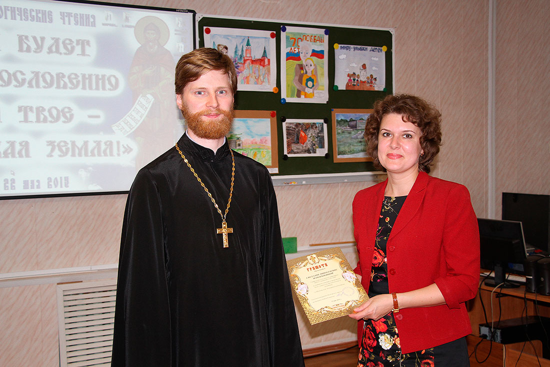 С приветственным словом к учителям русского языка и литературы, истории, начальных классов, преподавателям ОРКСЭ, воспитателям дошкольных учреждений и библиотекарям обратились помощник благочинного церквей Щелковского округа священник Димитрий Поповский и председатель Комитета по образованию Г.Б. Поляковский.