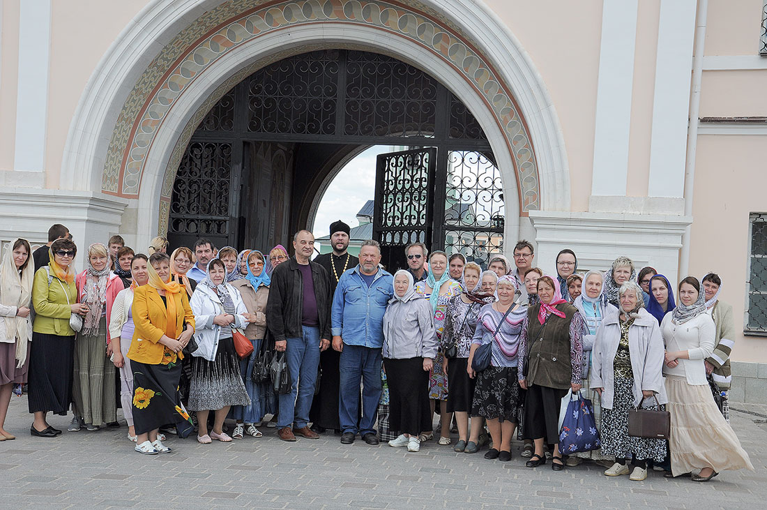 Причастившись на ранней Божественной литургии, паломники приложились к мощам преподобного Амвросия и отправились на экскурсию по монастырю. Экскурсовод с любовью и кротостью рассказал о жизни монастырской, об убиенных на Пасху трех братиях. В часовне Воскресения Христова у могил убиенных иноков настоятель священник Иоанн Солнцев отслужил панихиду и помазал святым маслом всех паломников. Затем, искупавшись в святом источнике, поехали в село Клыково, где покоится матушка Сепфора, здесь тоже была отслужена панихида, которую сопровождал замечательный хор Гребневского храма и воспитанников воскресной школы. Побывали и в Шамордино, женской обители, созданной на этой благодатной земле батюшкой Амвросией в последние годы его земной жизни. Омылись и набрали святой воды на источнике Казанской иконы Божией Матери.
