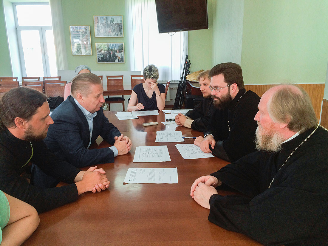 18 июня в конференц-зале Троицкого собора города Щелково прошло выездное собрание Епархиального отдела по реставрации и строительству под председательством благочинного церквей Химкинского округа, ответственного по контролю вопросов оформления храмов, зданий, земельных участков Московской епархии протоиерея Артемия Гранкина.