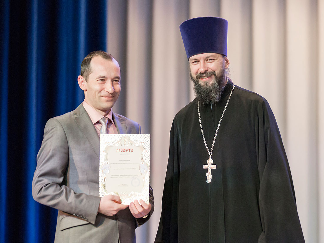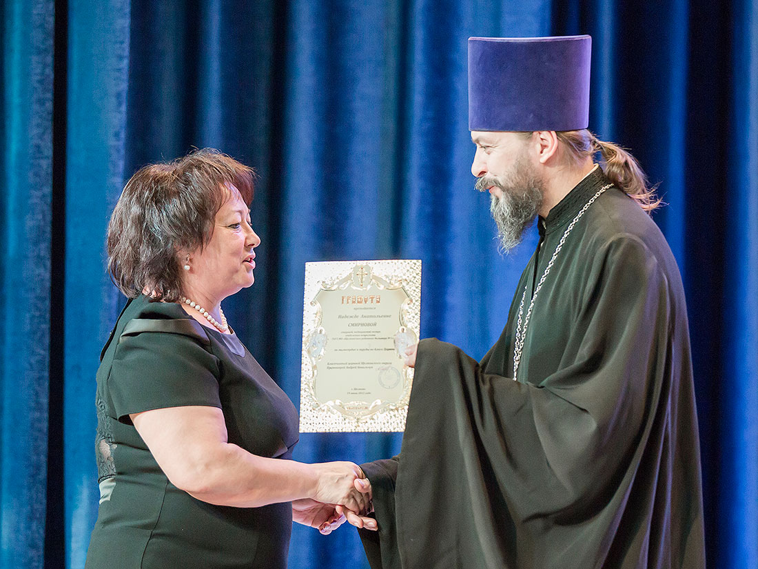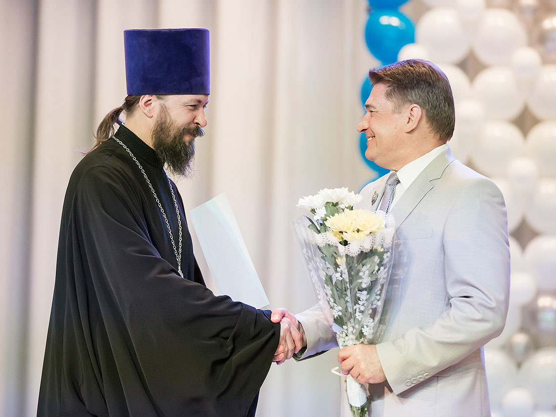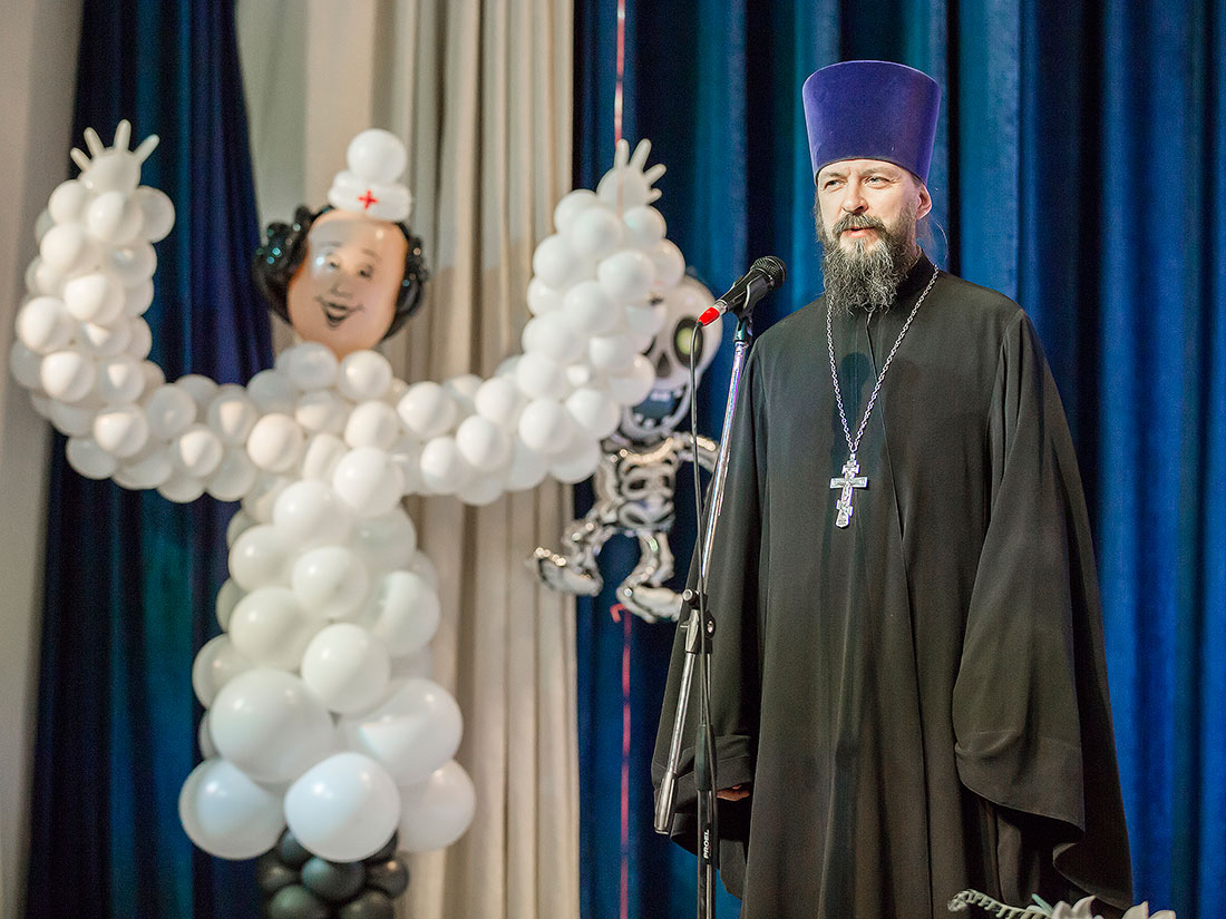 От имени духовенства медицинских работников приветствовал ответственный отдела по работе с медицинскими учреждениями священник Антоний Сенько. Батюшка поздравил собравшихся с профессиональным праздником и преподнес заслуженным работникам медицины грамоты Щелковского благочиния.