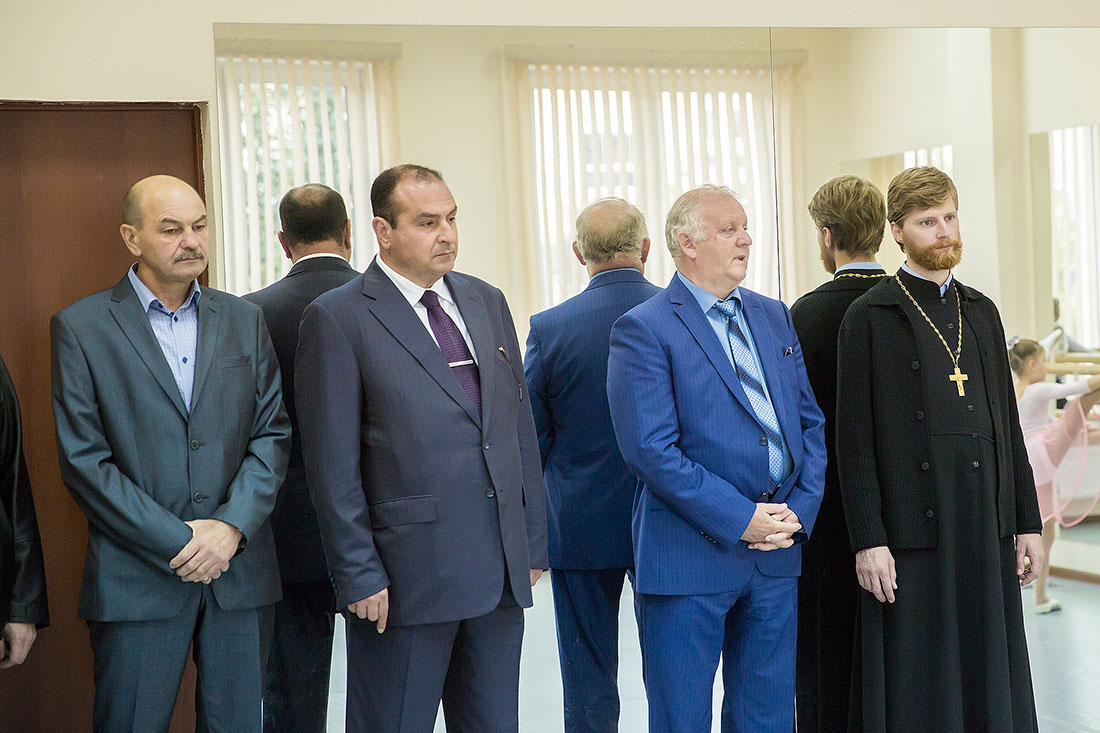 В торжественном мероприятии приняли участие глава наукограда В.В.Ухалкин, врио главы администрации И.М.Сергеев, меценаты строительства Г.В.Агекян и В.С.Добычин, настоятель Державного храма священник Димитрий Поповский, учащие и учащиеся школы.