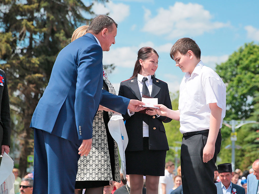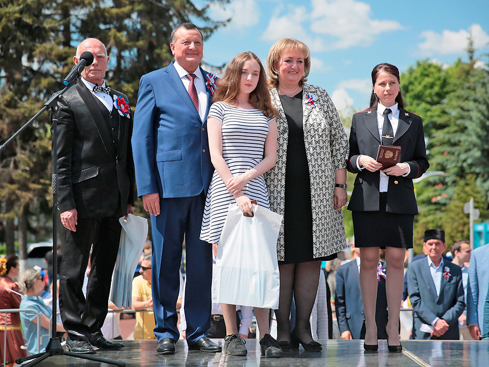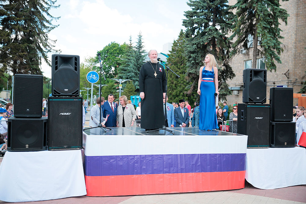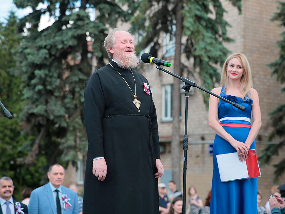 депутат Московской областной думы Шапкин В.Н., сотрудники администрации, члены молодёжных организаций города и представители общественности. От лица духовенства собравшихся поздравил благочинный Щелковского церковного округа протоиерей Андрей Ковальчук.