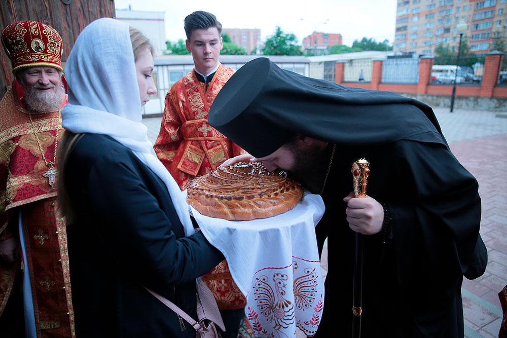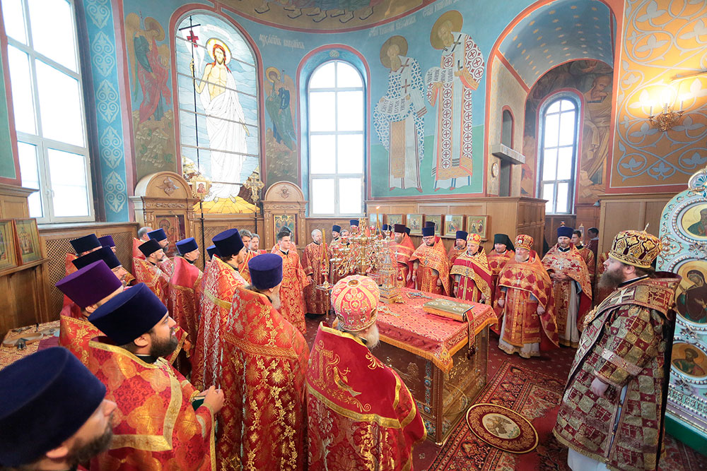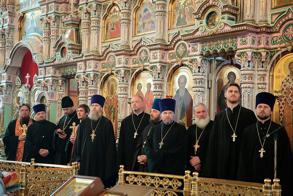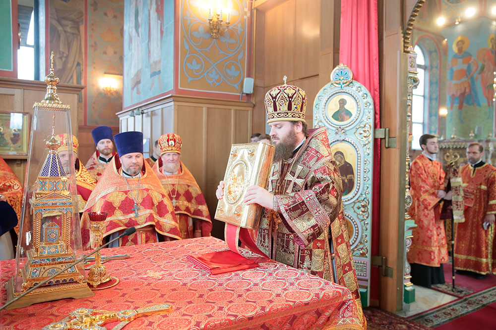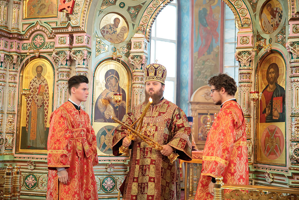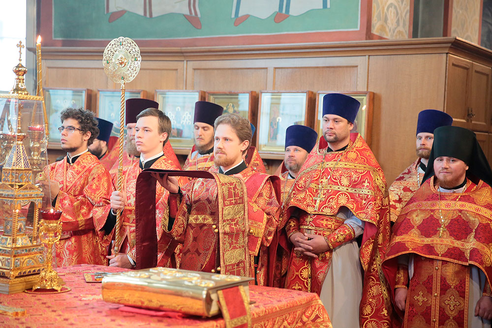 Богослужение возглавил ректор Коломенской духовной семинарии епископ Зарайский Константин в сослужении благочинного церквей Щелковского округа протоиерея Андрея Ковальчука, члена Синодальной комиссии по канонизации святых, секретаря Епархиальной комиссии по канонизации святых и Епархиальной богослужебной комиссии протоиерея Максима Максимова и духовенства Щелковского церковного округа.