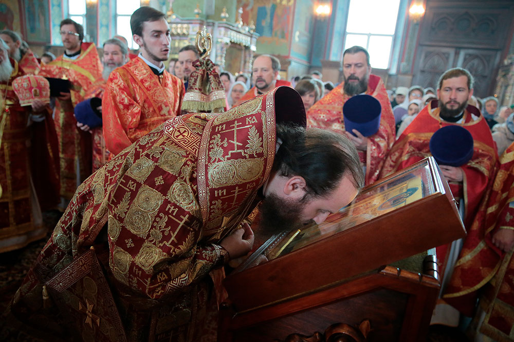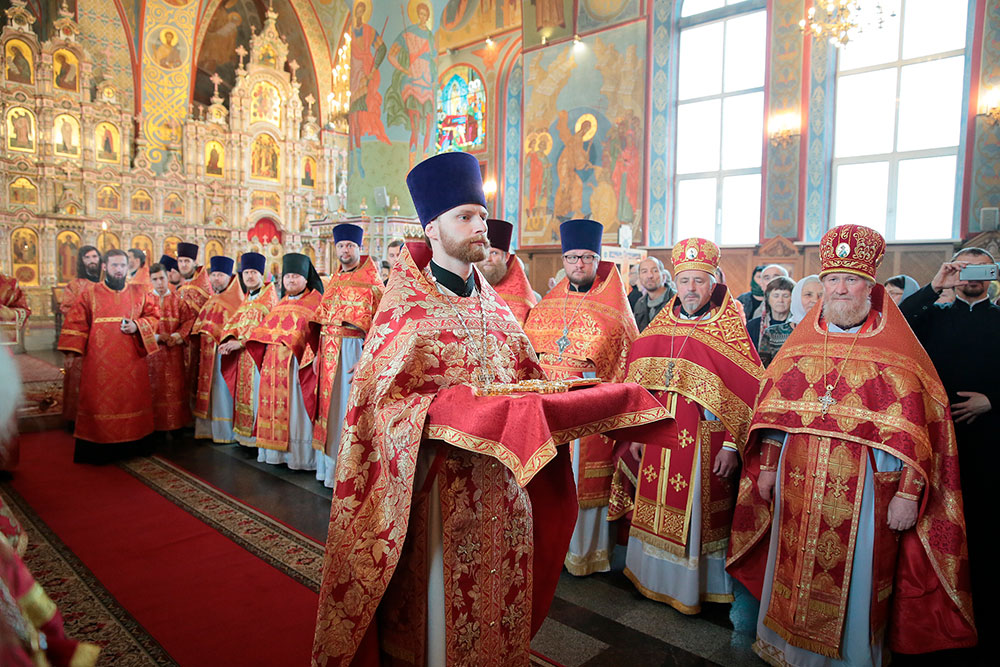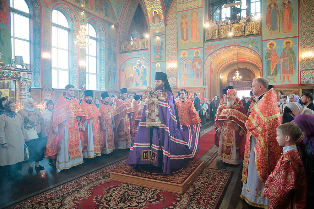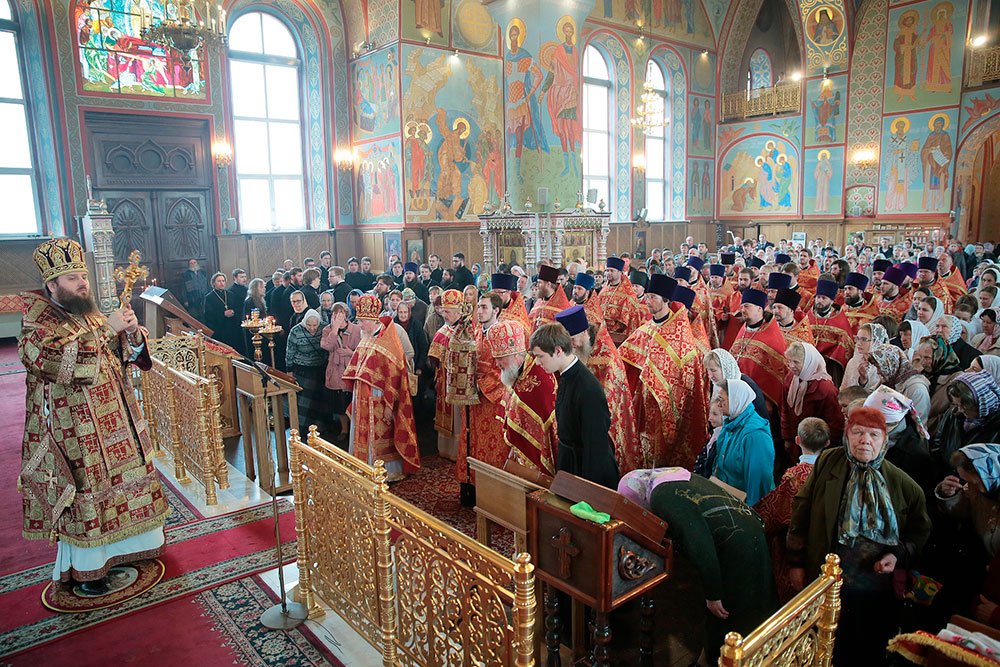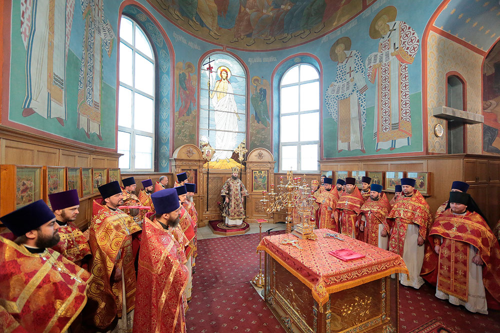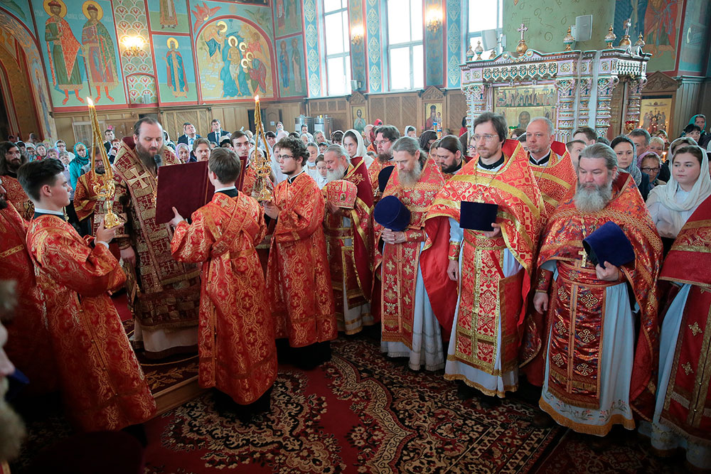 Богослужение возглавил ректор Коломенской духовной семинарии епископ Зарайский Константин в сослужении благочинного церквей Щелковского округа протоиерея Андрея Ковальчука, члена Синодальной комиссии по канонизации святых, секретаря Епархиальной комиссии по канонизации святых и Епархиальной богослужебной комиссии протоиерея Максима Максимова и духовенства Щелковского церковного округа.