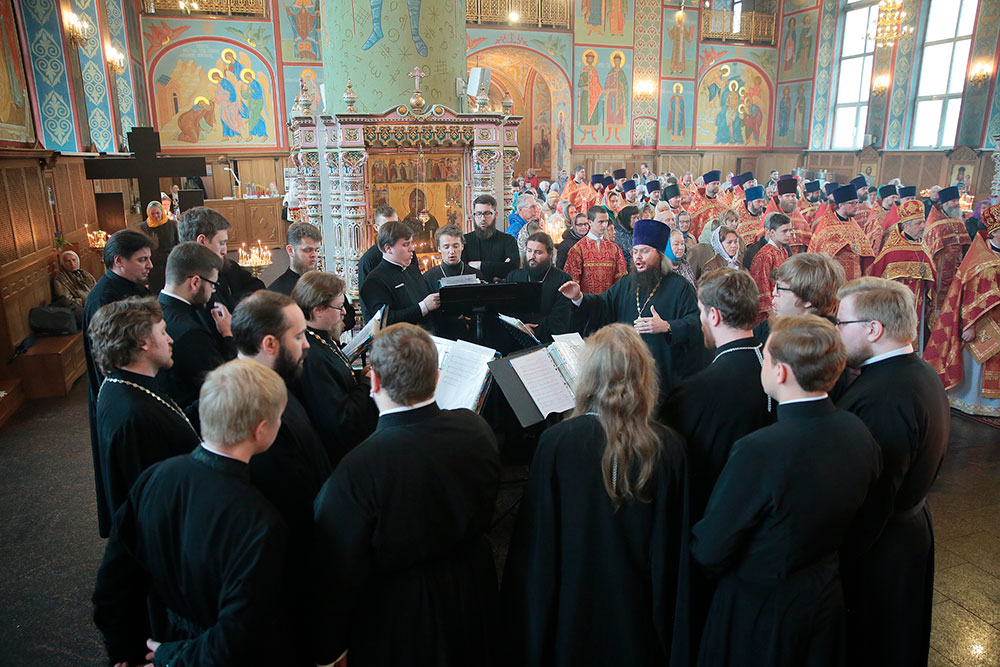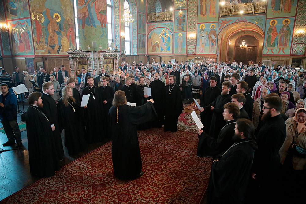 Богослужебные песнопения исполняли хор духовенства Московской епархии под управлением священника Сергия Голева и детский хор Щелковского благочиния под руководством Анны Медведевой.