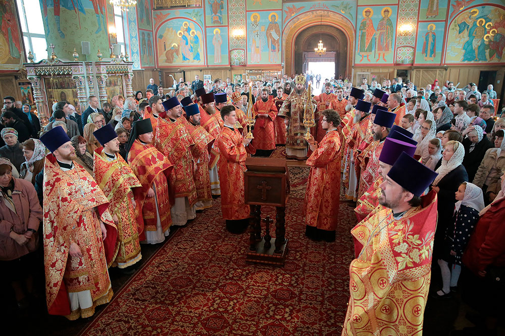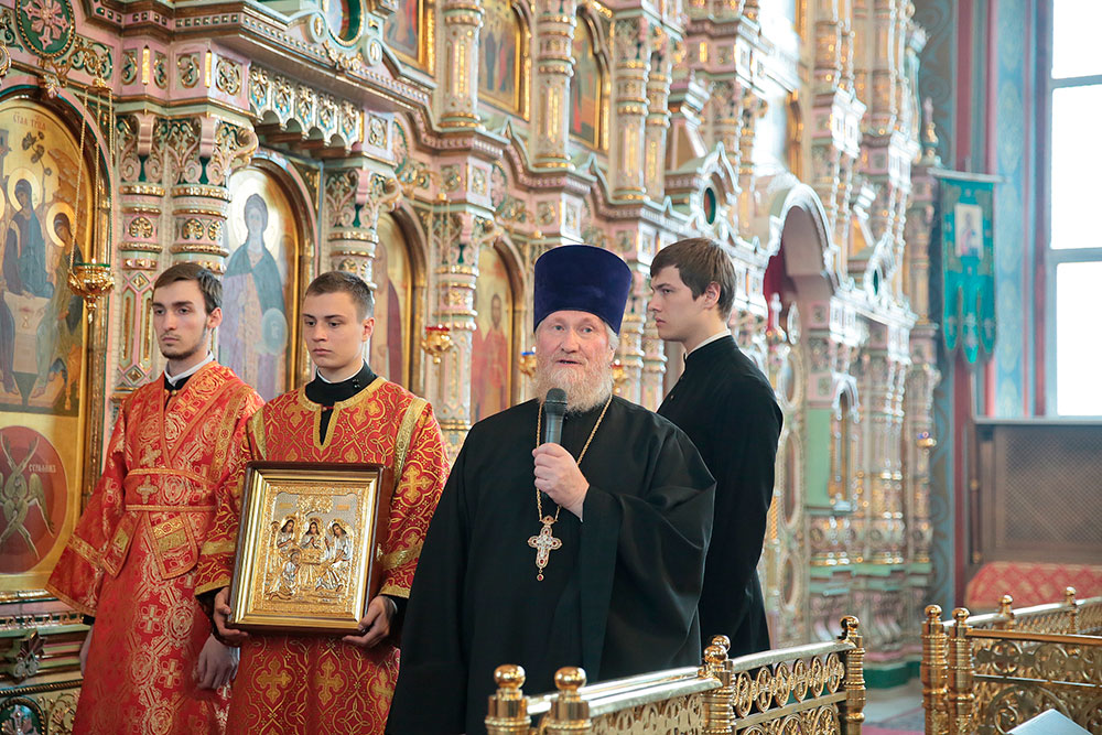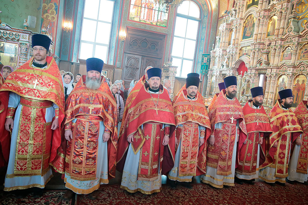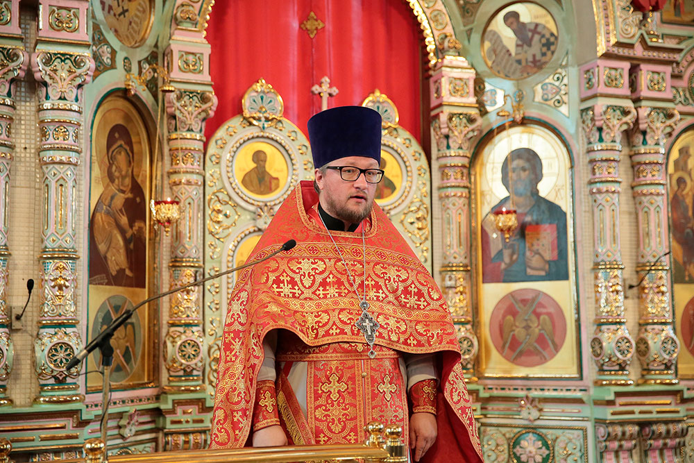 После запричастного стиха к прихожанам со словом проповеди обратился протоиерей Максим Максимов, который раскрыл смысл и значение истинной веры, которая является стержнем жизни православного христианина, и с которой не страшны ссылки и тюрьмы, смерть и гонения.