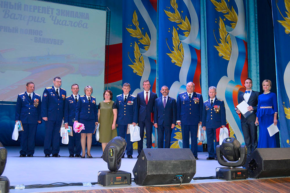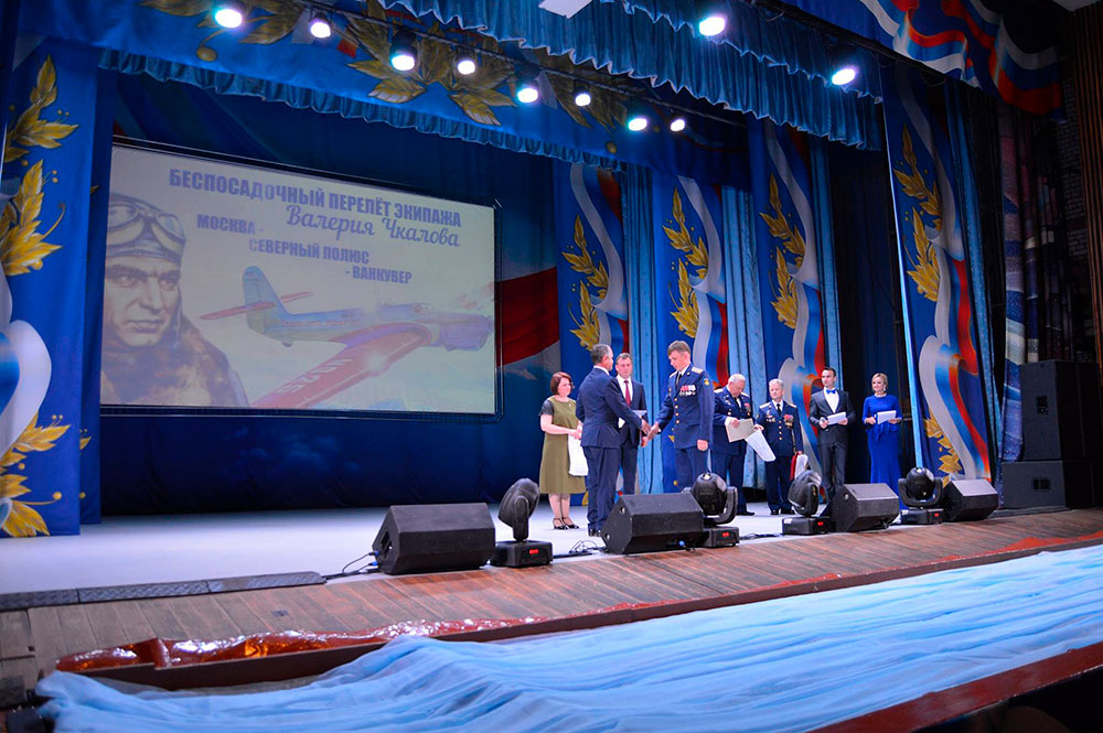Юбилейное мероприятие началось с построения военнослужащих частей гарнизона, митинга и открытия мемориальной доски. К памятнику в честь Беспосадочного перелета экипажа В.П. Чкалова в США были возложены цветы и гирлянды.