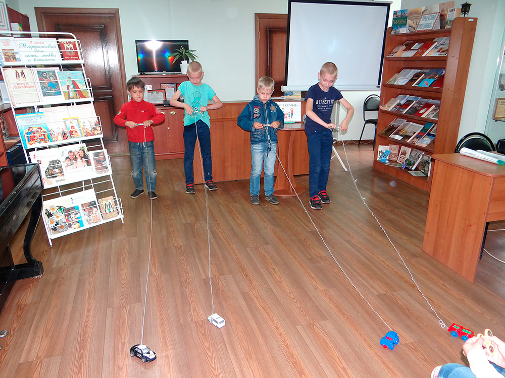 Викторина «Жили – были» была посвящена сказочным семьям, ее участникам нужно было узнать героя по описанию. В конкурсе «Быстрота и ловкость» девочки, будущие мастерицы, должны были перемотать нить на настоящее веретено, а мальчишки – быстро по трассе провести машину. Веревочное единоборство не оставило никого равнодушным, все ребята шумно и весело поддерживали своих друзей.