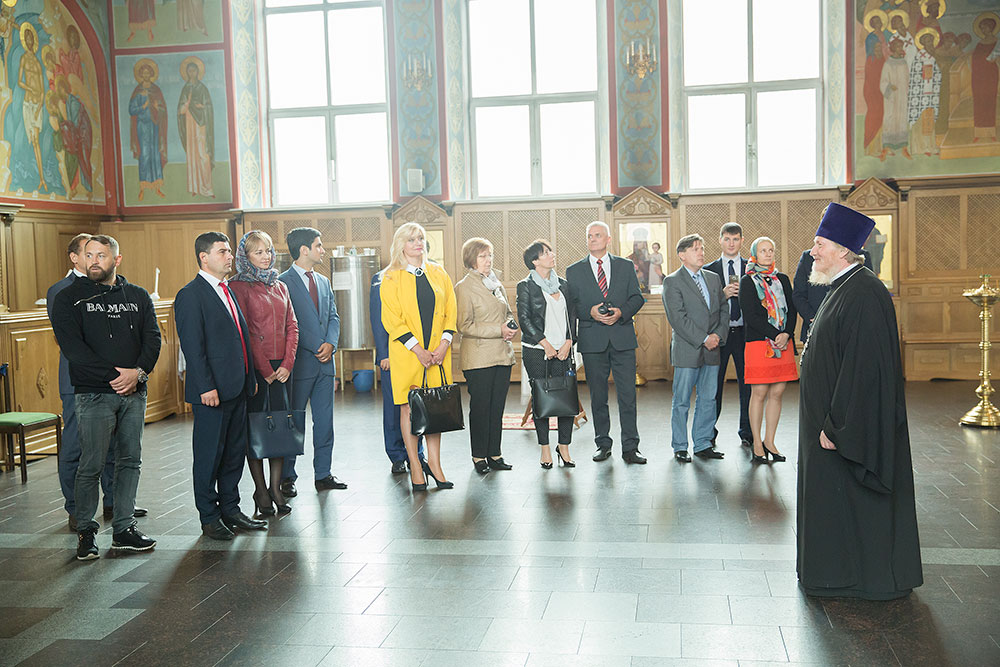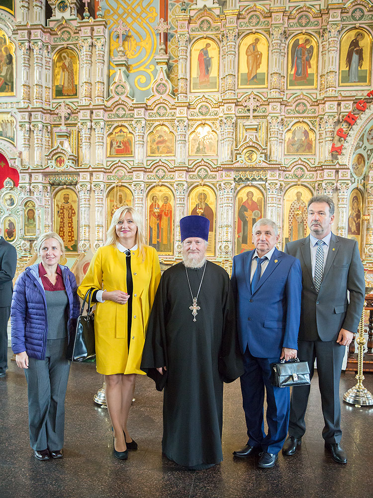 Зарубежные гости с большим интересом познакомились с историей строительства и восстановления центрального храма благочиния, отец Андрей рассказал также о современной жизни прихода.