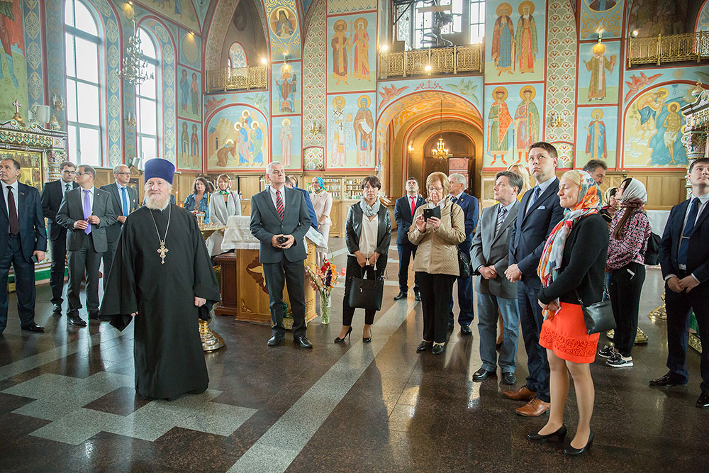 25 августа, накануне Дня города, благочинный церквей Щелковского округа протоиерей Андрей Ковальчук встречал в Троицком соборе делегацию иностранных гостей из городов-побратимов Щелкова – немецкого Хемера, Белорусского Гродно, финского Лохья, латвийского Талси и молдавского Орхей.