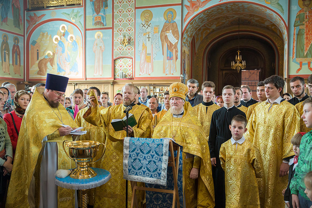 После молебна благочинный церквей Щелковского округа протоиерей Андрей Ковальчук преподал Божие благословение учащимся на предстоящий учебный год, а ключарь собора священник Александр Амелин окропил молящихся святой водой.