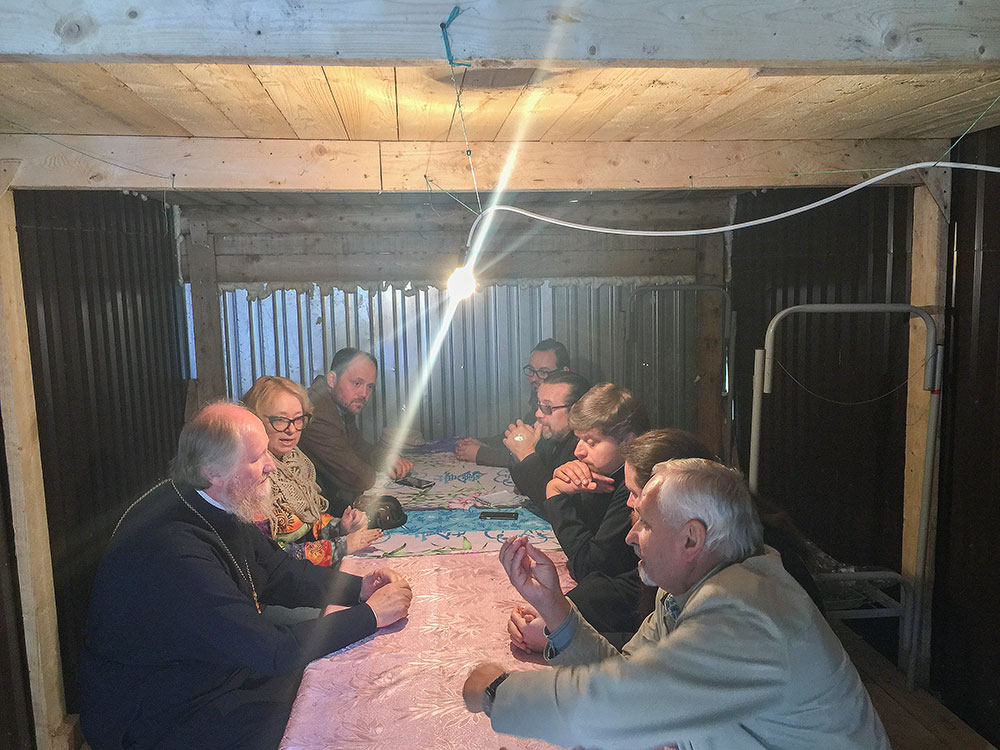 Во встрече приняли участие благочинные трёх церковных округов: Щелковского – протоиерей Андрей Ковальчук; Пушкинского – протоиерей Иоанн Монаршек и Волоколамского – священник Михаил Поляков, а также настоятель храма священник Алексий Кошелев. Со стороны реставраторов и архитекторов были: генеральный директор ООО «СПУ-19» Ступеньков Э.А., главный инженер Кравченко М.И. и главный архитектор проекта Горячева М.Ю.