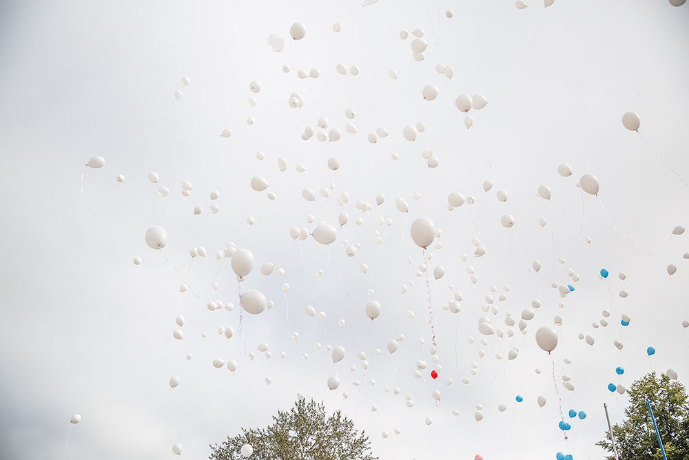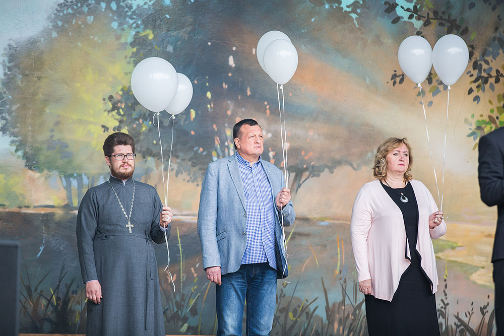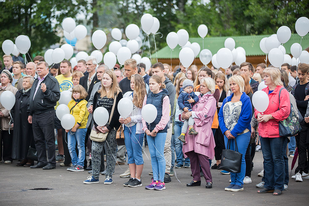 Участники митинга выпустили в воздух белые шары, символизирующие души погибших детей.