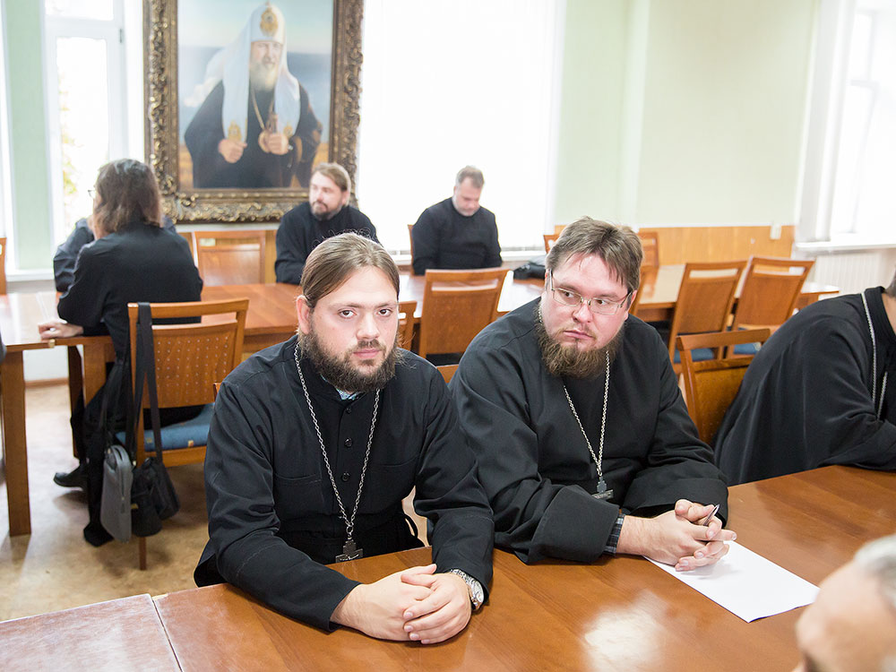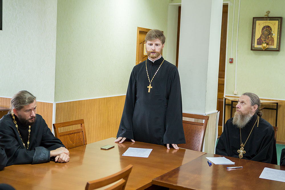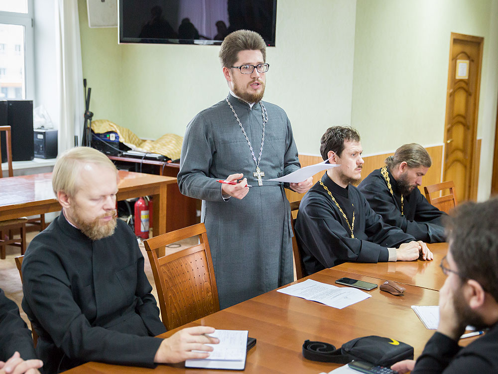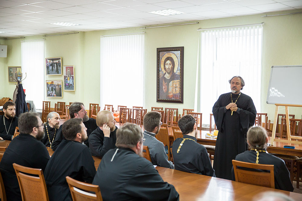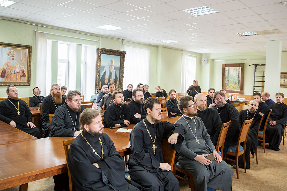 В конце собрания прошел пастырский семинар доцента Московской духовной академии, заведующего кафедрой Церковно-практических наук Общецерковной аспирантуры и докторантуры имени святых равноапостольных Кирилла и Мефодия священника Михаила Желтова «Отпусты».