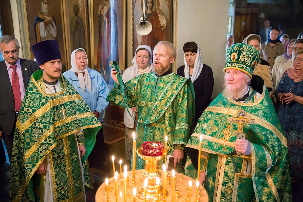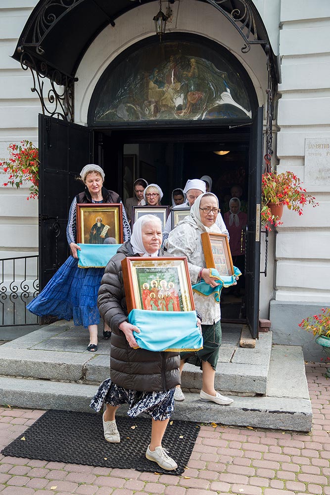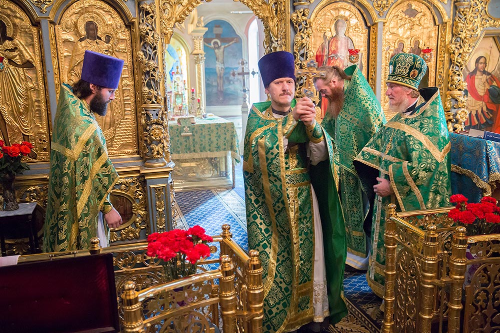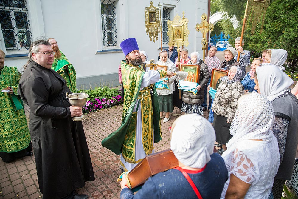 После Божественной литургии был совершен праздничный молебен с крестным ходом вокруг храма.