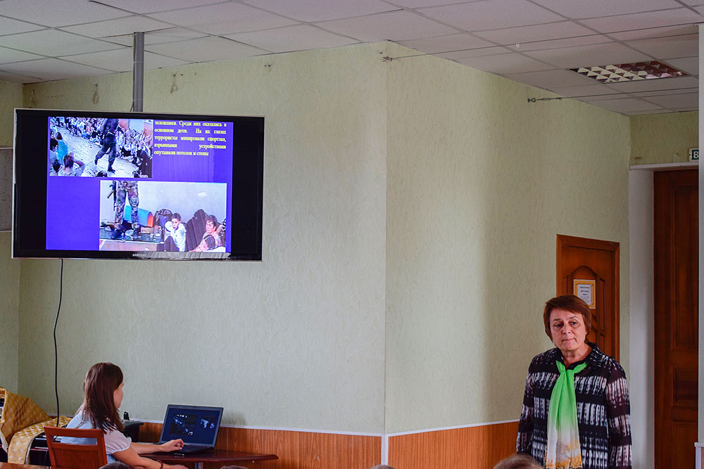 1 сентября 2004 года на торжественной линейке в 9 часов утра в г. Беслане Северной Осетии произошел теракт с захватом в заложники собравшихся на линейке у школы детей, учителей, родителей. Террористы держали 1128 человек заложников трое суток в нечеловеческих условиях в отсутствии воды, пищи, воздуха, издеваясь и расстреливая. На третьи сутки после того, как удалось договориться о выдаче тел убитых неожиданно прогремели два взрыва от замкнувших проводов системы минирования. Два штурмовых подразделения «Вымпел» и «Альфа» в течение 10 часов осуществляли операцию по освобождению заложников, не жалея своих собственных жизней. В списках погибших 186 детей, 15 учителей, более 900 человек получили ранения и неизгладимую психологическую травму.