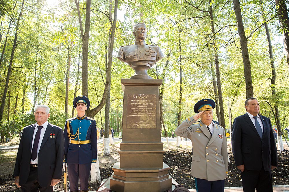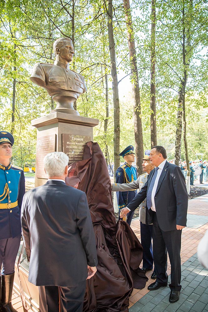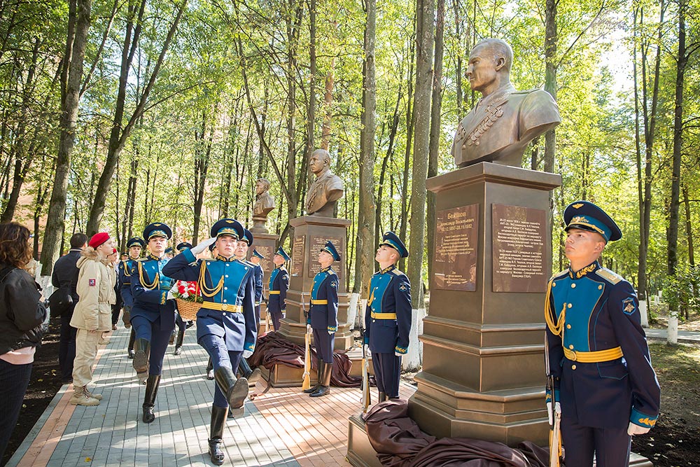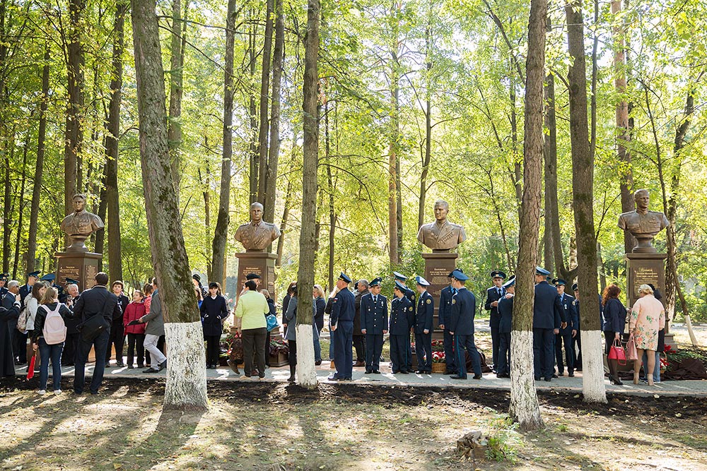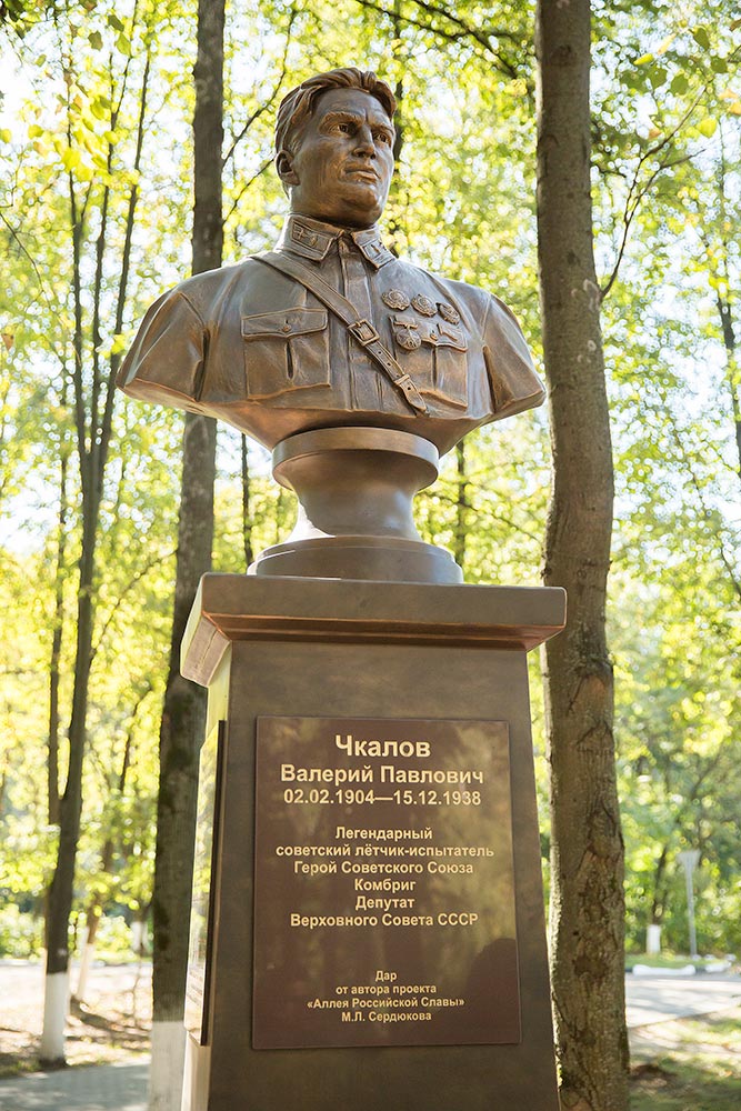 Там были установлены бюсты Героев Советского Союза Валерия Чкалова, Георгия Байдукова, Александра Белякова и Михаила Громова.