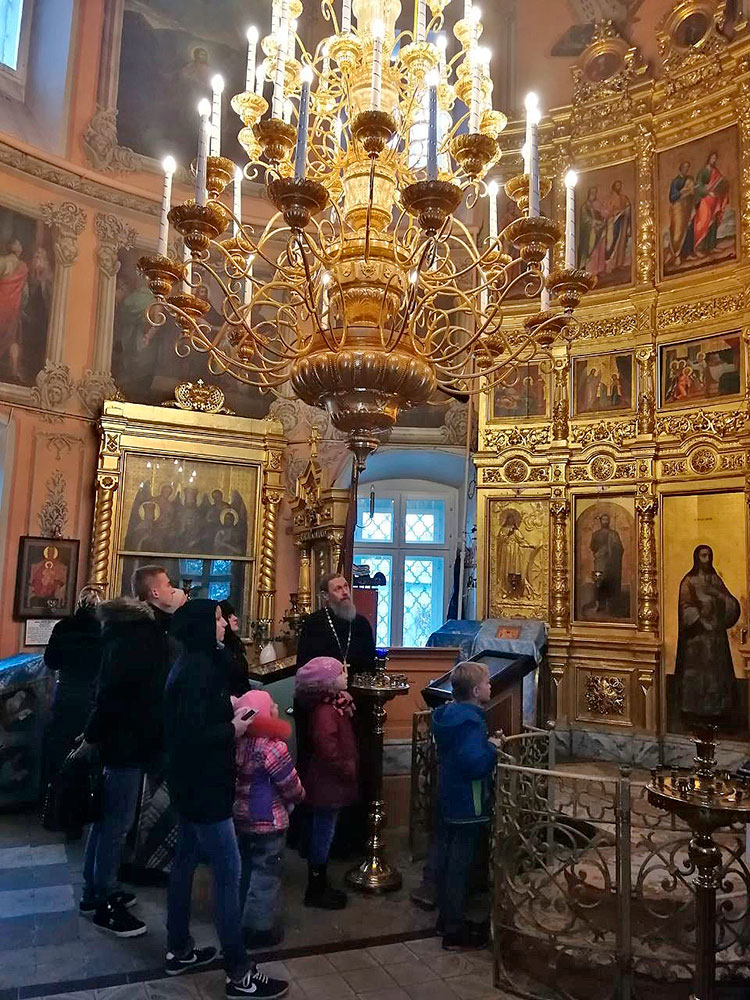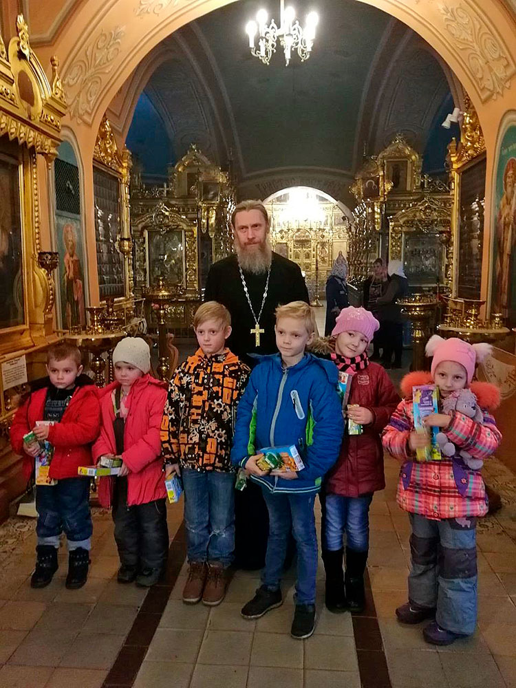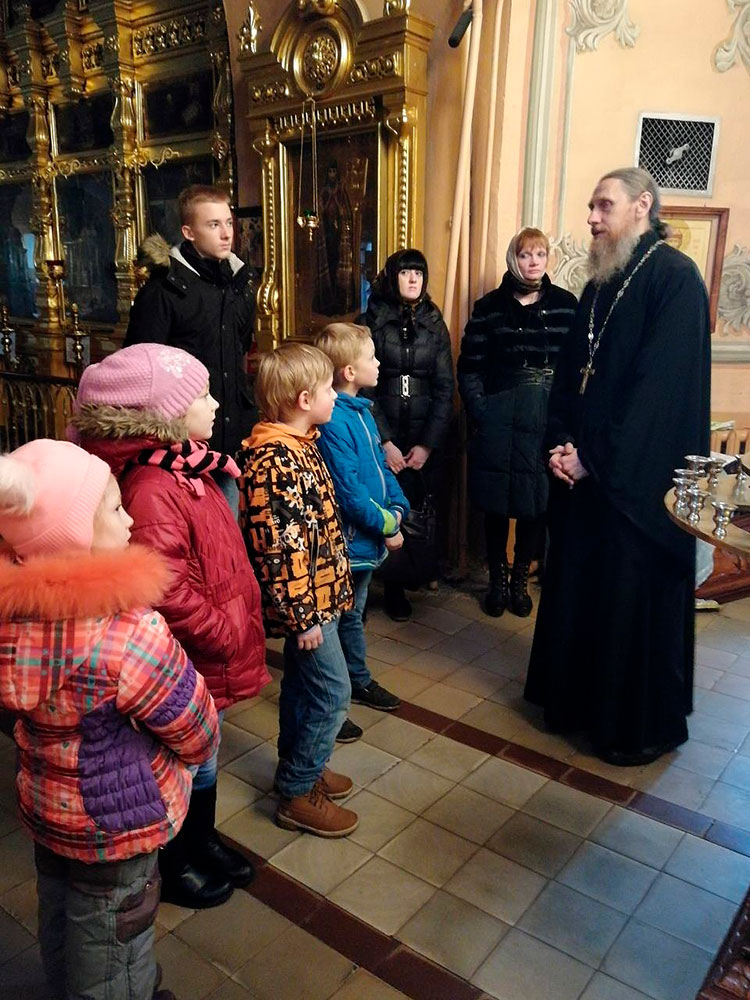 Настоятель храма протоиерей Алексий Никонов провел провел гостям экскурсию по храму, дал детям духовные наставления. В этот день каждый ребенок получил подарок.
