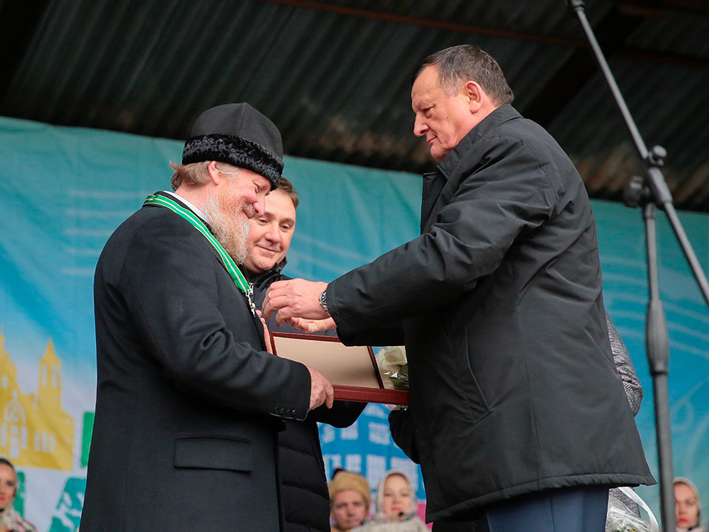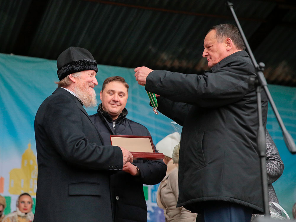 В этот день А.В. Валов вручил отцу Андрею награду Московской области знак преподобного Сергия Радонежского.