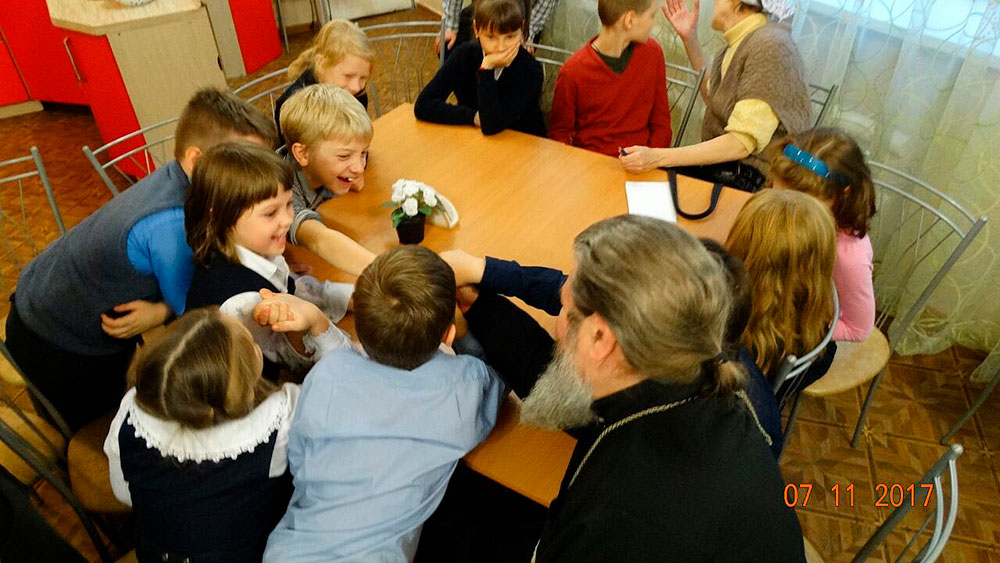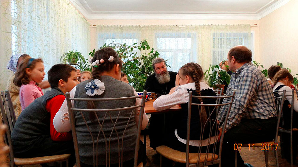 Воспитанники центра общались с батюшкой и задавали ему различные вопросы. После беседы всех детей ждали подарки.