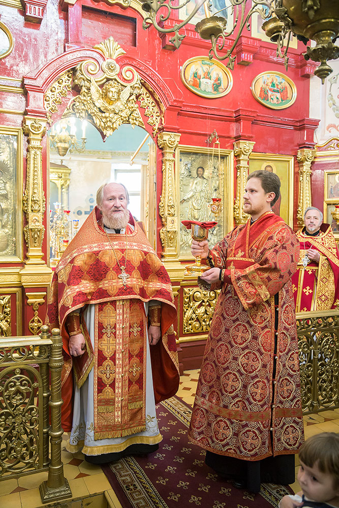 Праздничное богослужение возглавил благочинный церквей Щелковского округа протоиерей Андрей Ковальчук. Ему сослужили настоятель храма протоиерей Олег Лахманюк, клирик храма протоиерей Димитрий Кузнецов, клирик Чеховского благочиния протоиерей Роман Изосимов и клирик Троицкого собора г. Щелково диакон Кирилл Ковальчук. После Божественной литургии был совершен праздничный молебен, после которого, отец Андрей обратился к прихожанам храма со словами поздравления.