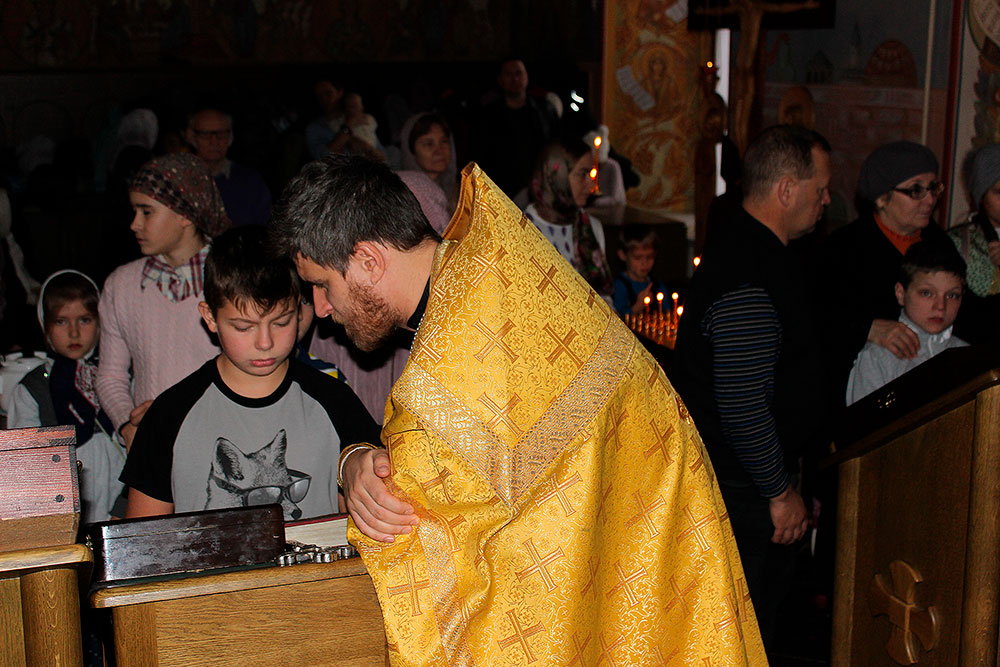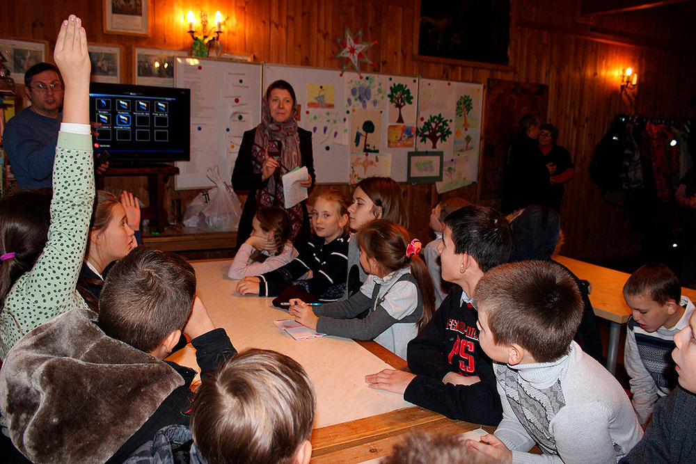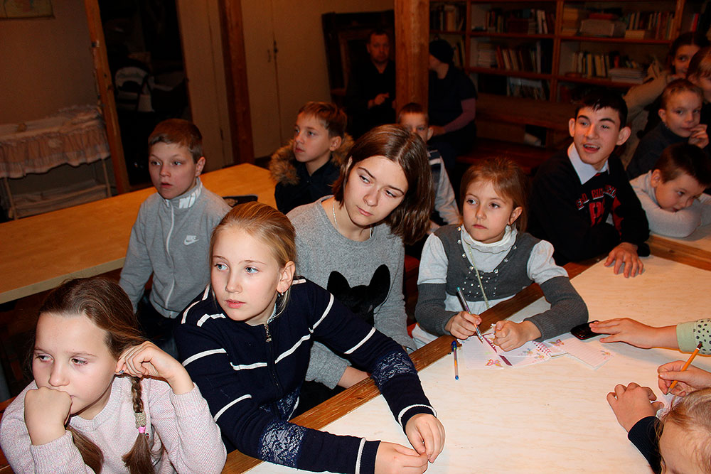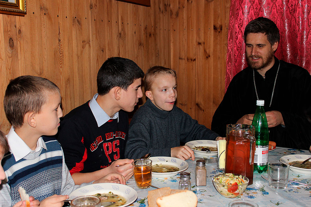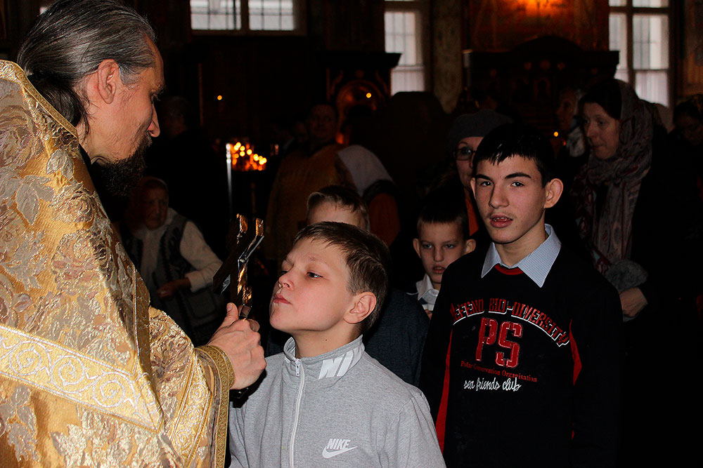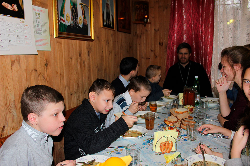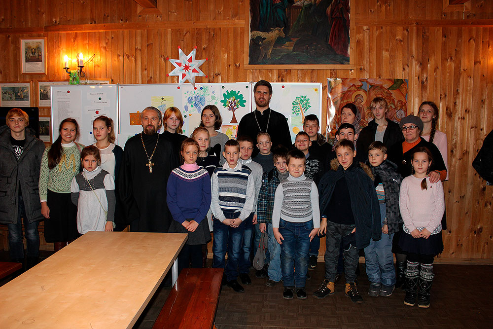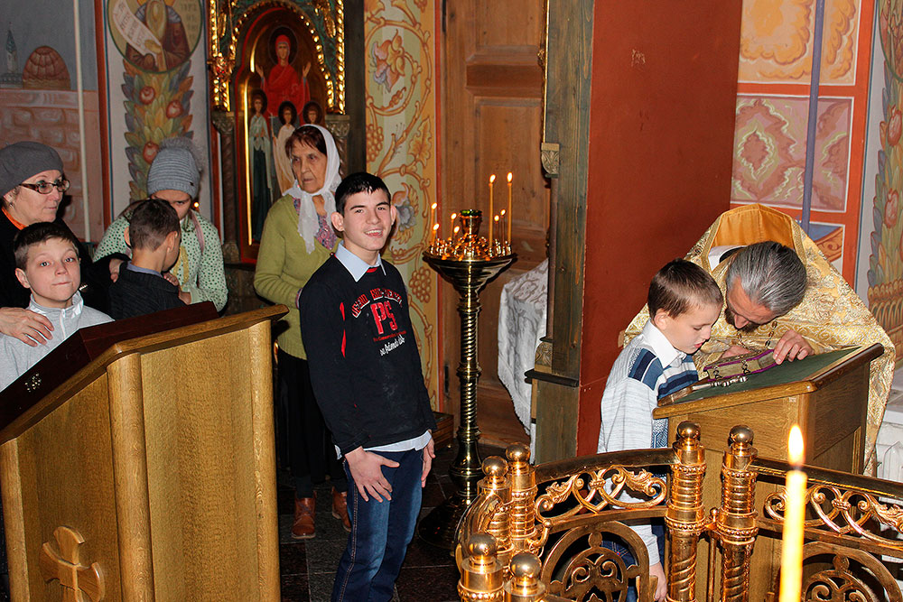 Ребята присутствовали на Божественной литургии, исповедовались и причащались Святых Христовых Таин, а затем вместе с учениками воскресной школы приняли участие в уроке. Занятие было посвящено жизни св. блж. Василия, Московского чудотвореца. Также во время урока ребята посмотрели фильм, посвященный этому великому подвижнику. На занятии присутствовал настоятель храма отец Илия Плешаков и клирик храма священник Кирилл Серышев. После занятия все получили подарки.