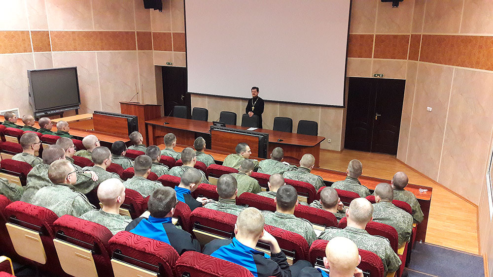 В воинской части прошла беседа с солдатами, посвященная служению священника в армии. Им был предложен к просмотру документальный фильм "Служба и служение".