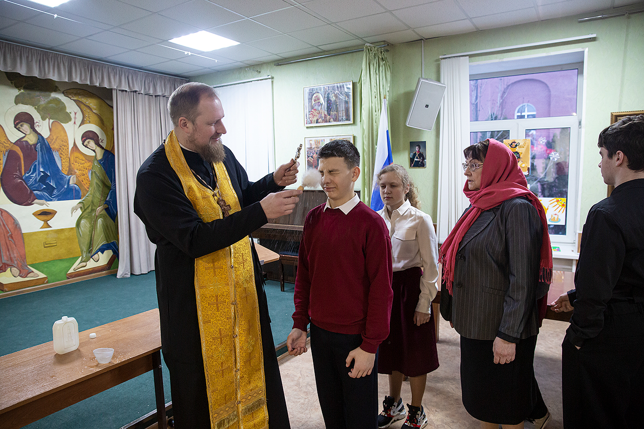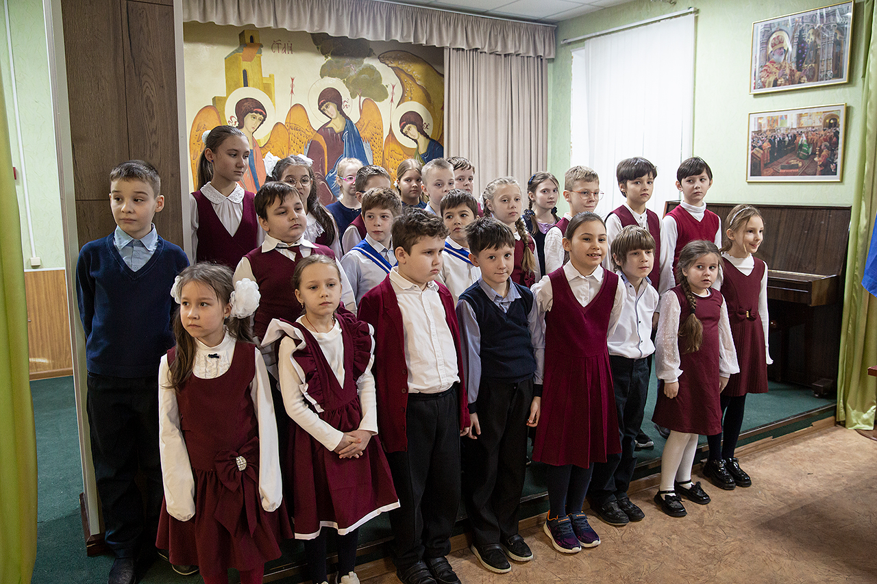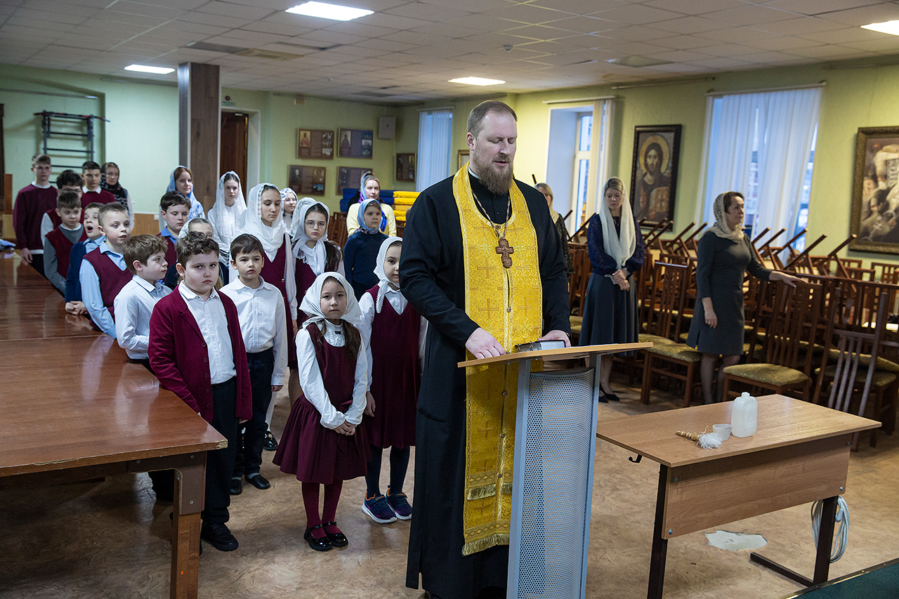 16 февраля в преддверии праздника День защитника Отечества в Православной Алексиевской гимназии при Троицком соборе города Щёлково после утренних молитв прошла торжественная линейка «Я служу России».