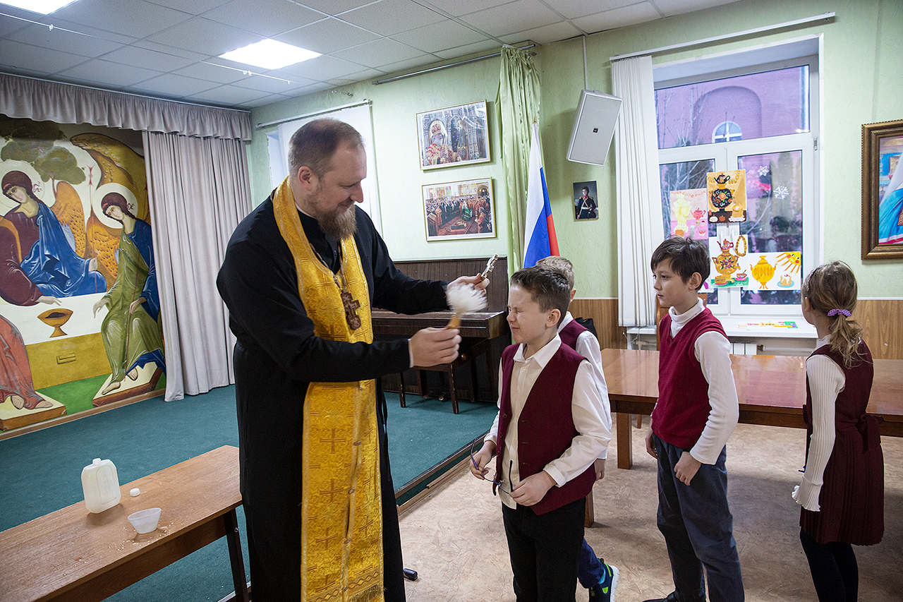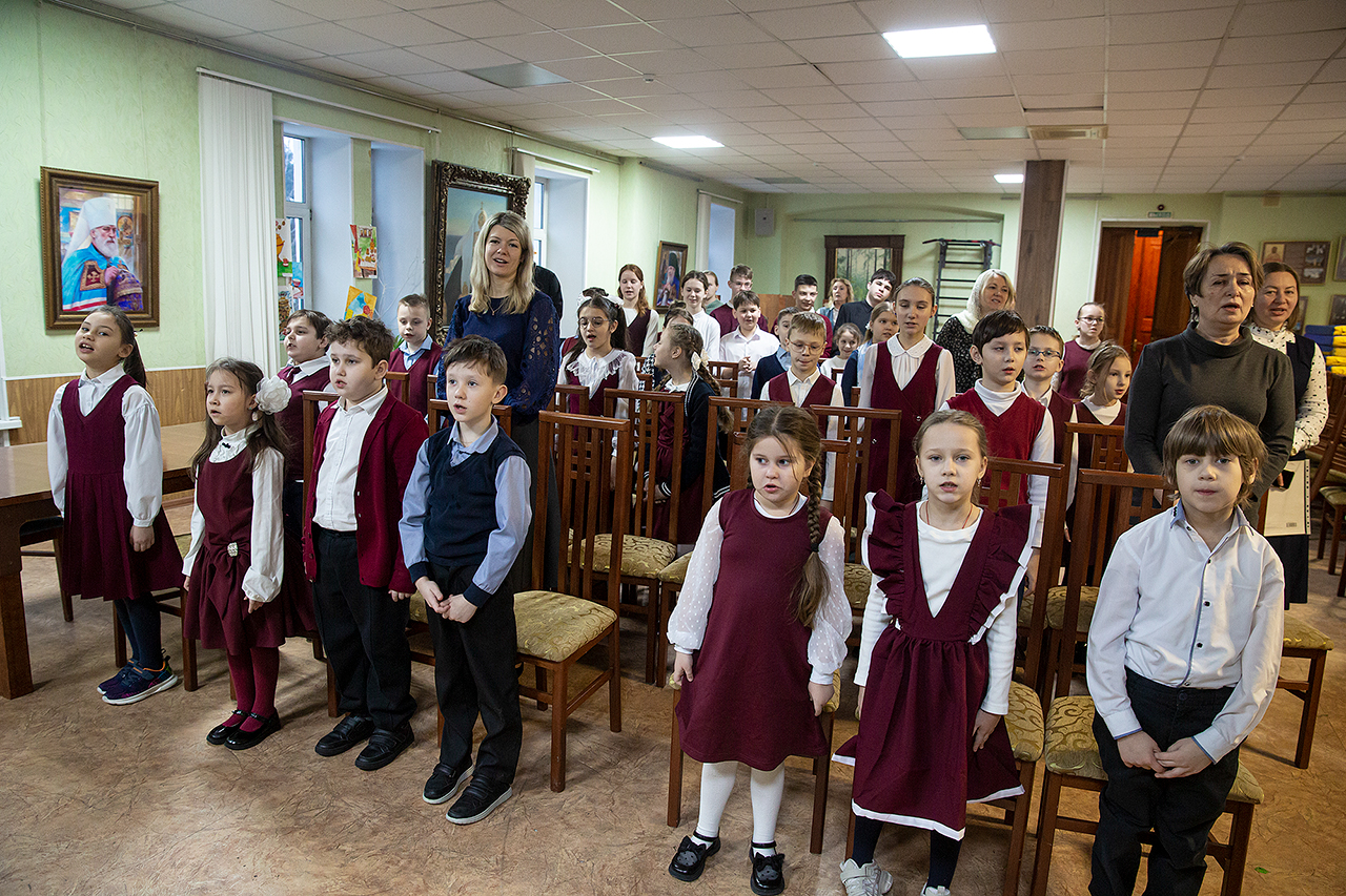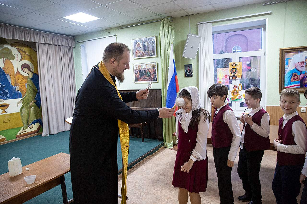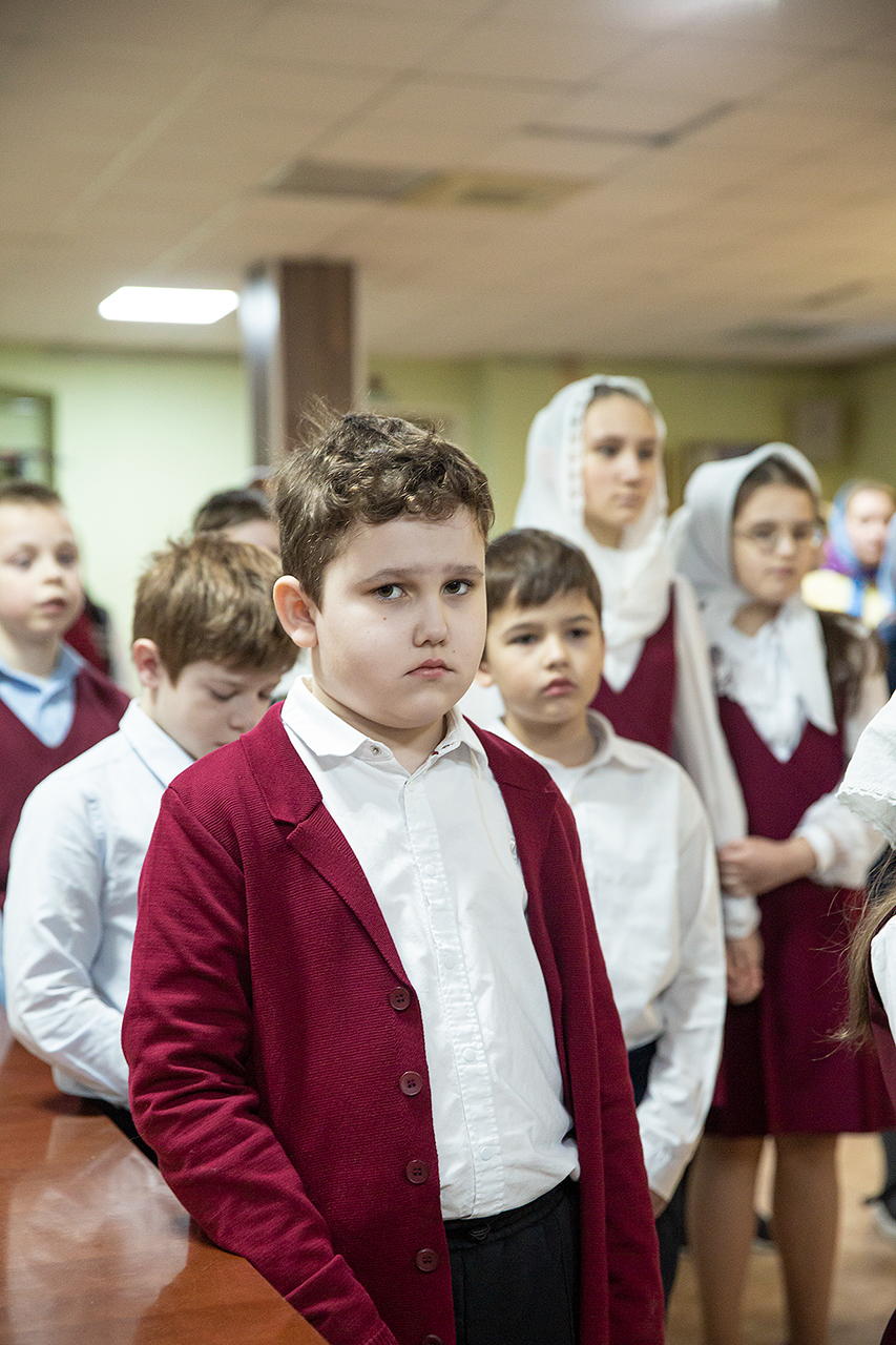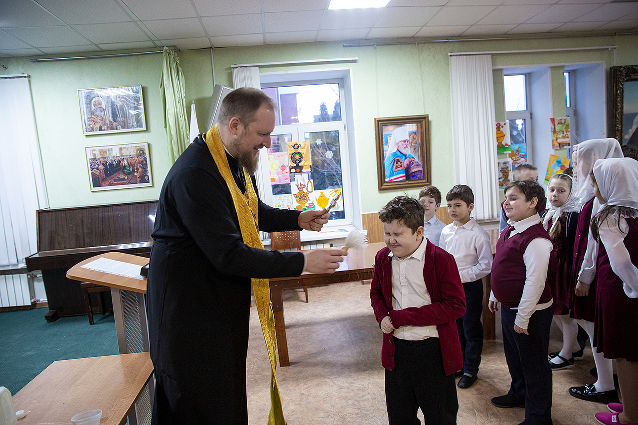 С любовью и теплотой ученики начальной школы прочитали стихи и поздравили благочинного отца Андрея и духовника отца Павла.