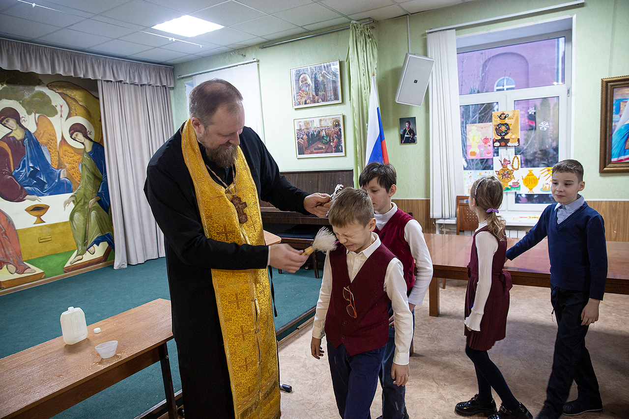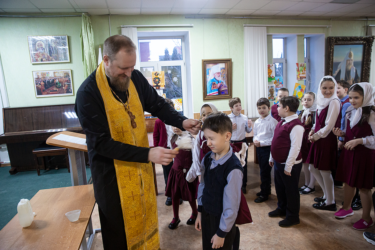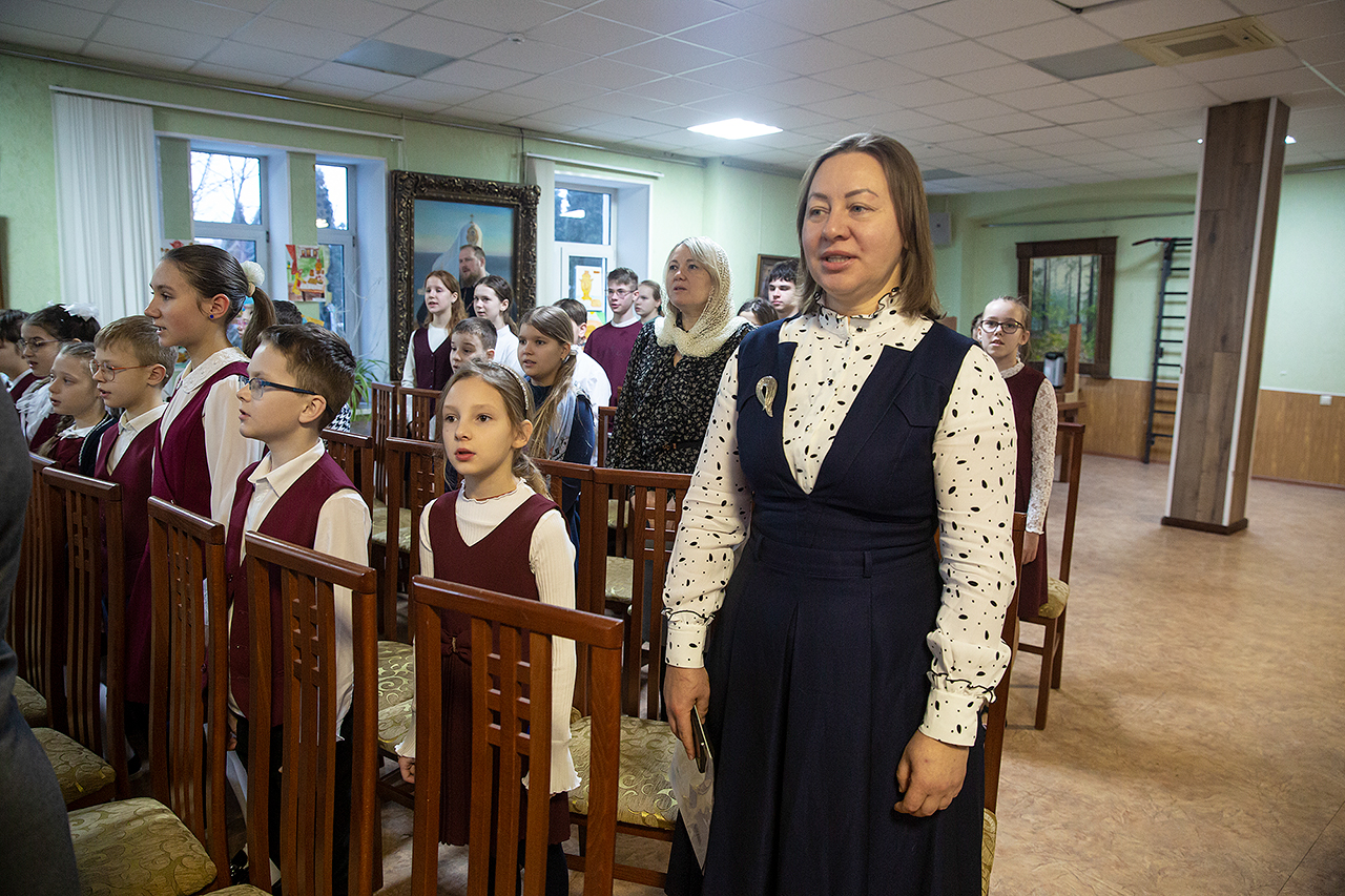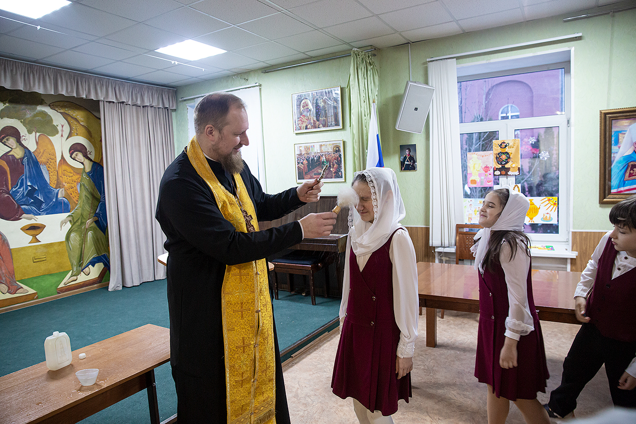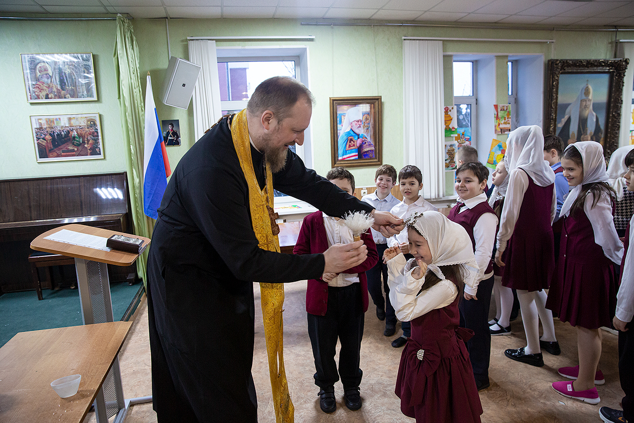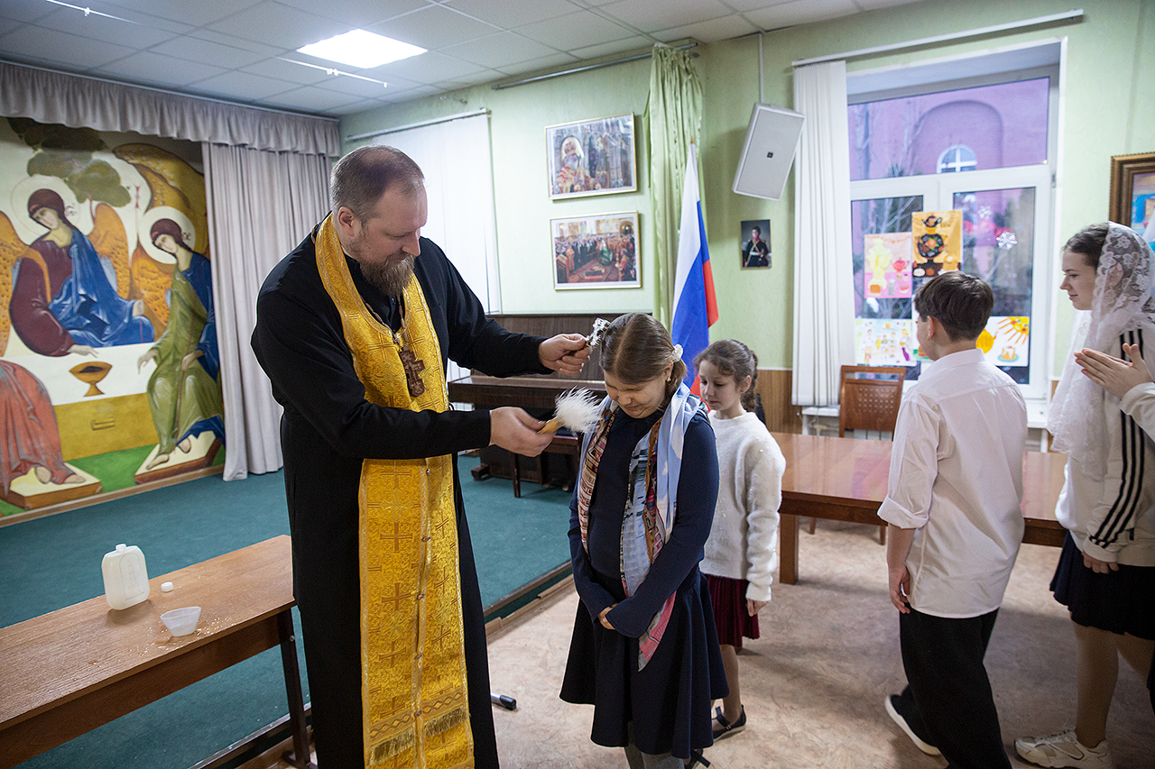 С любовью и теплотой ученики начальной школы прочитали стихи и поздравили благочинного отца Андрея и духовника отца Павла.