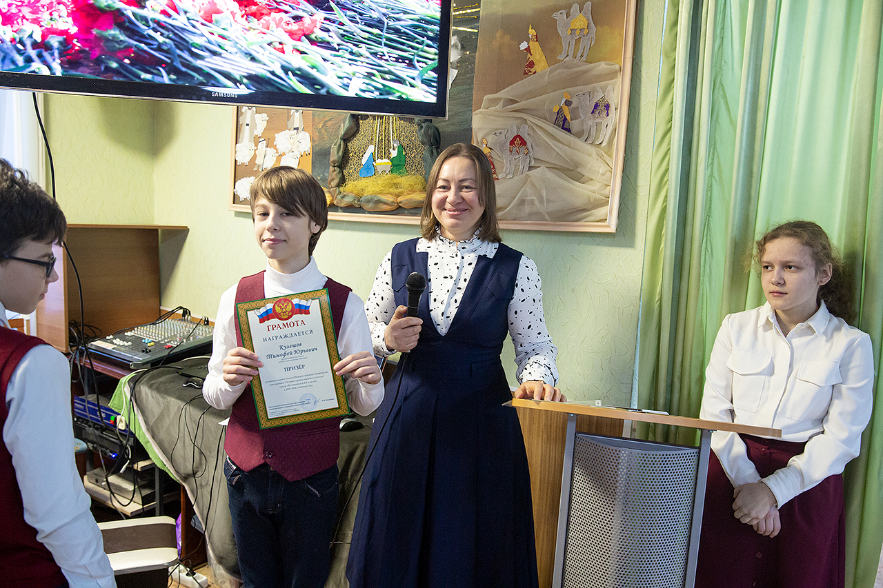 Директор гимназии Анна Викторовна Лыгина поздравила всех с праздником и вручила Благодарности и Грамоты учителям и ребятам за участие в конкурсах.