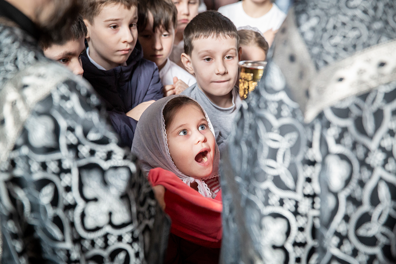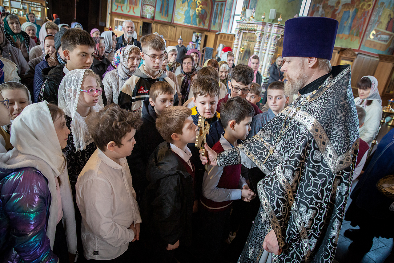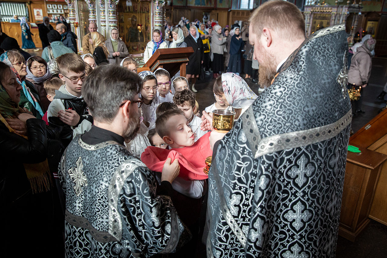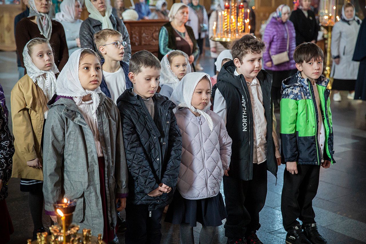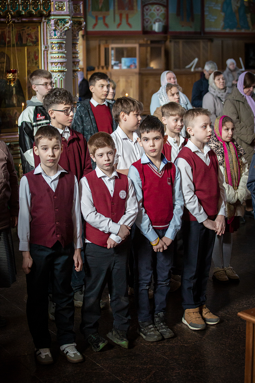 На богослужении помимо прихожан молились учащиеся, родители и педагоги Православной Алексиевской гимназии. По ходу богослужения делались небольшие остановки, во время которых, духовник гимназии священник Павел Чекалин, обращался к молящимся с пояснениями, в которых раскрывался смысл совершаемых священнодействий и песнопений. Подобные службы помогают христианам больше понимать происходящее в храме и благодаря этому делать свою богослужебную жизнь более осознанной и спасительной. Гимназисты и прихожане с интересом и вниманием помолились на такой познавательной Литургии и приобщились Святых Христовых Таин.