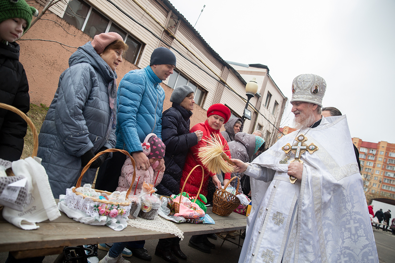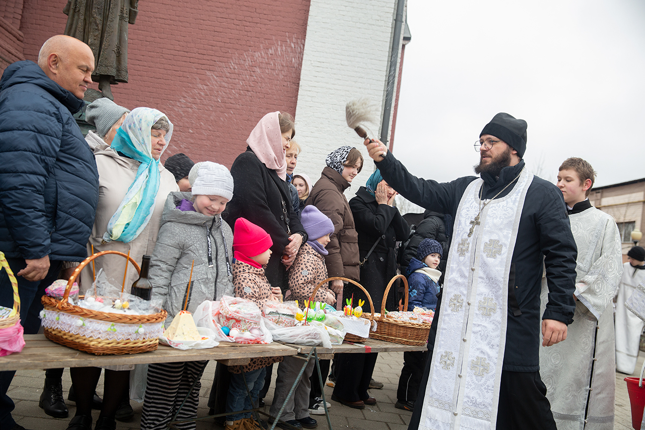 По окончании богослужения отец Андрей и священники собора освятили крашеные яйца, куличи и пасхи, принесенные в этот день в храм жителями Щёлково.