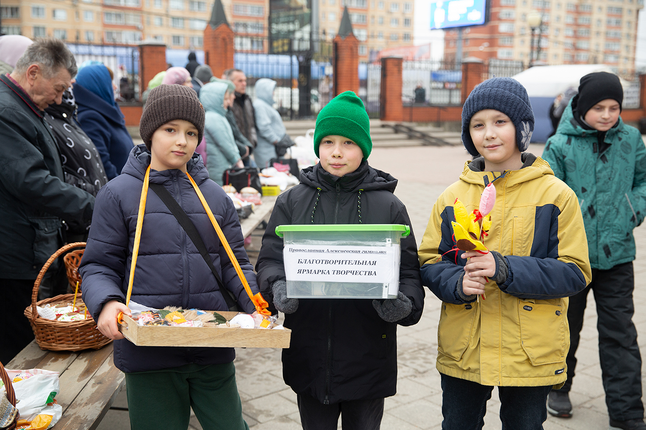 В этот день на территории Троицкого собора прошла благотворительная ярмарка изделий декоративно-прикладного творчества, выполненных учащимися, учителями и родителями Православной Алексиевской гимназии города Щёлково. Собранные средства будут направлены на ремонт нового корпуса гимназии.