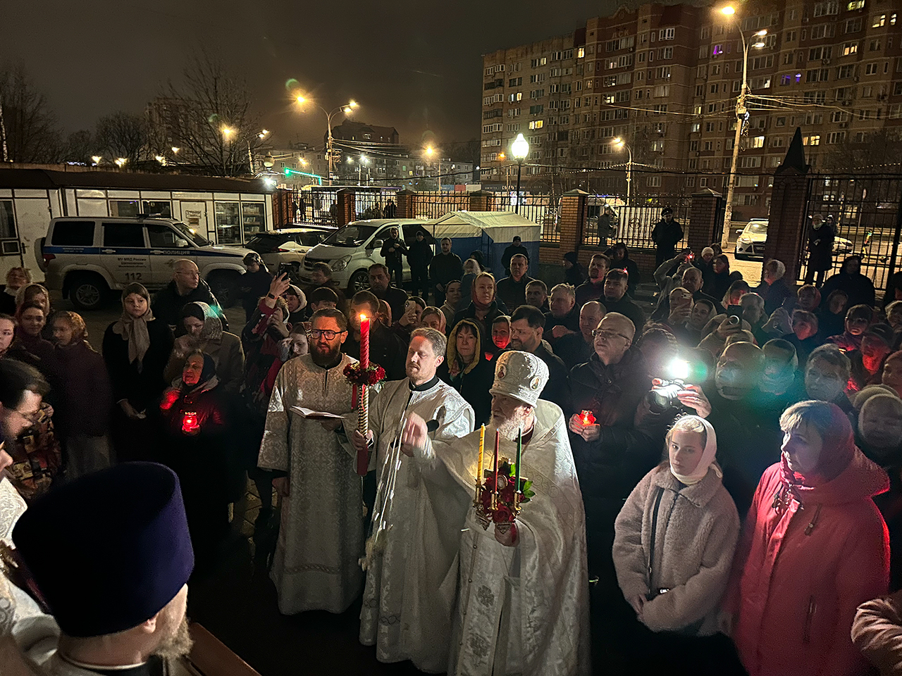По традиции в Пасхальную ночь в Троицкий собор города Щёлково из Храма Воскресения Христова (Гроба Господня) в Иерусалиме был принесен Благодатный огонь, сошедший в этот день на Гроб Господень. Отец Андрей возжег от Благодатного огня свечи, которые были переданы молящимся прихожанам.