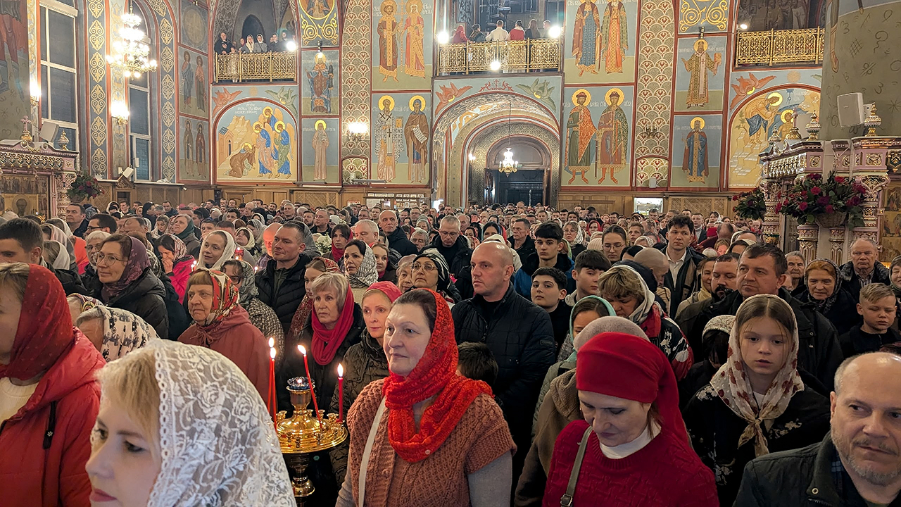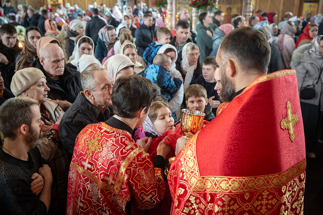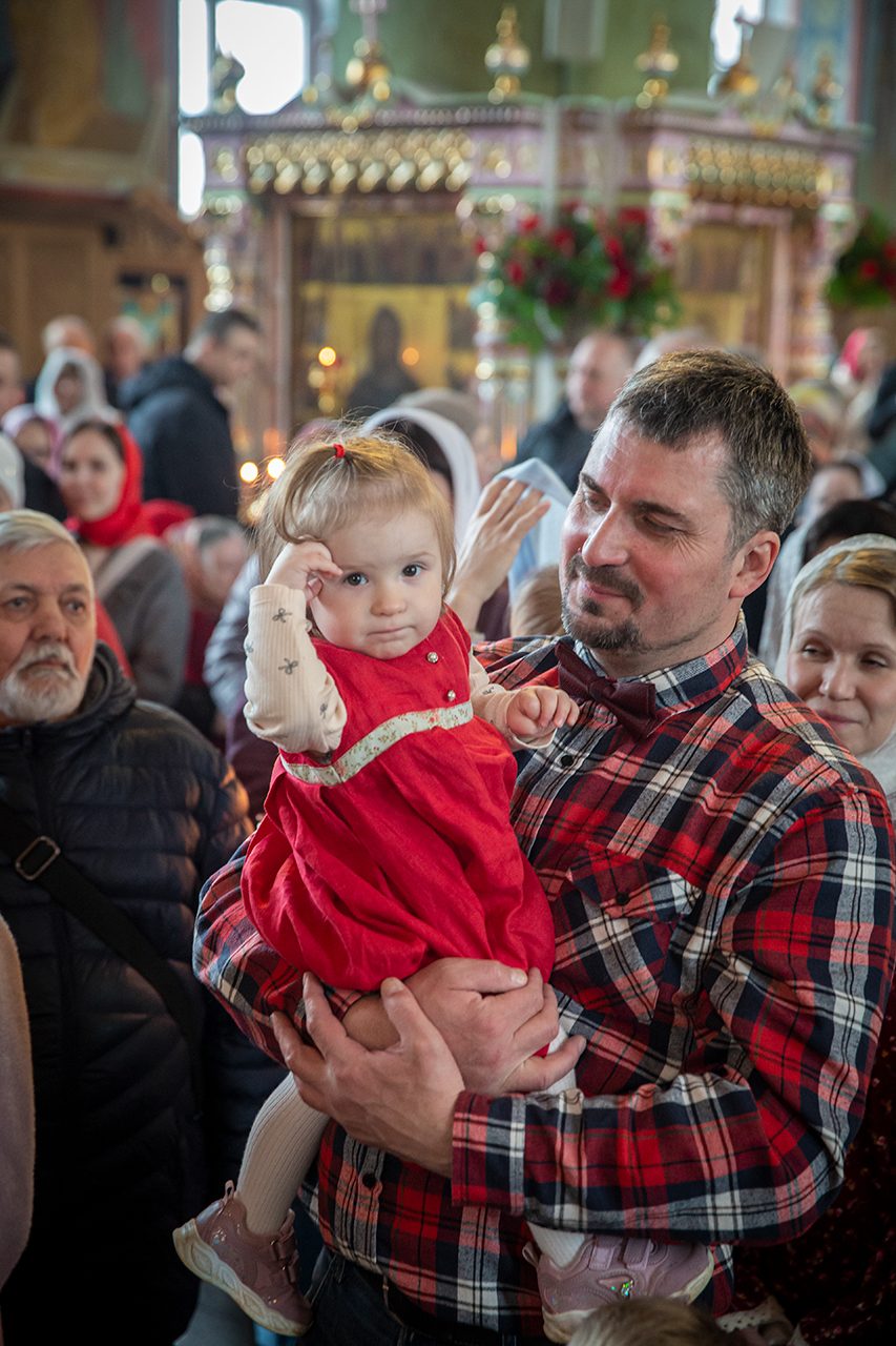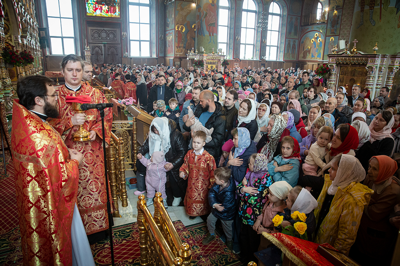 Утром, 12 апреля, в Троицком соборе была совершена поздняя Божественная Литургия, которую совершил клирик собора священник Роман Галиев. На поздней Литургии пел хор (регент – Анна Медведева).