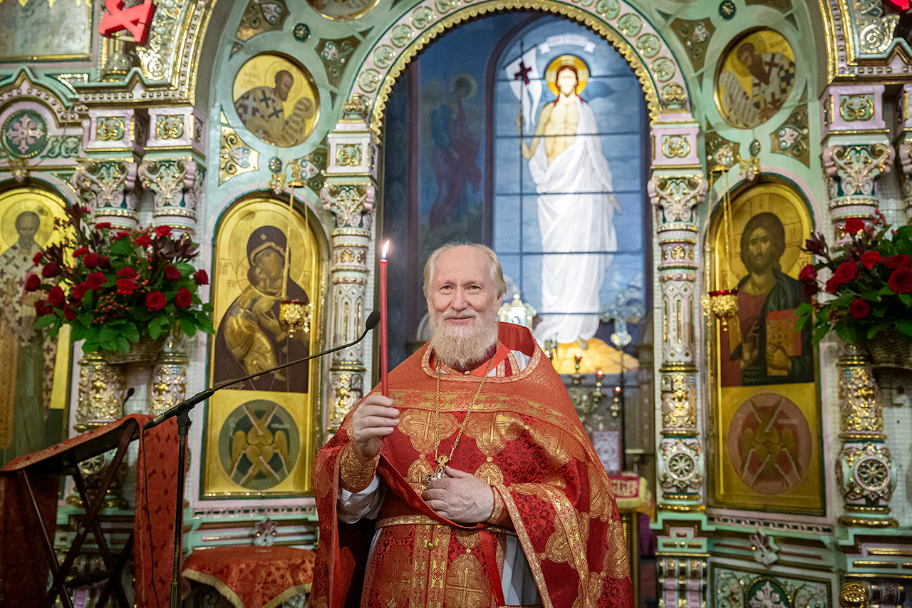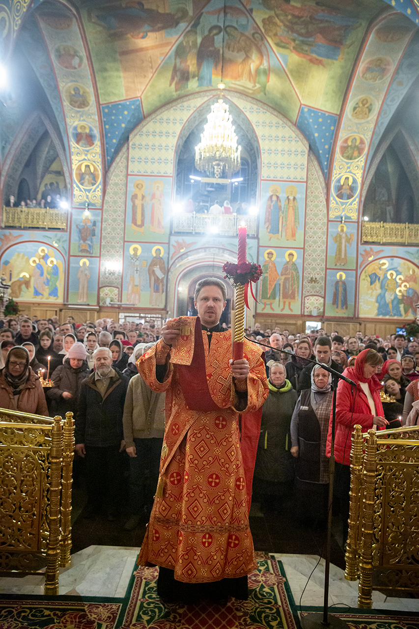 После Пасхальной заутрени протоиерей Андрей огласил Пасхальное послание Святейшего Патриарха Кирилла архипастырям, пастырям, монашествующим и всем верным чадам Русской Православной Церкви.