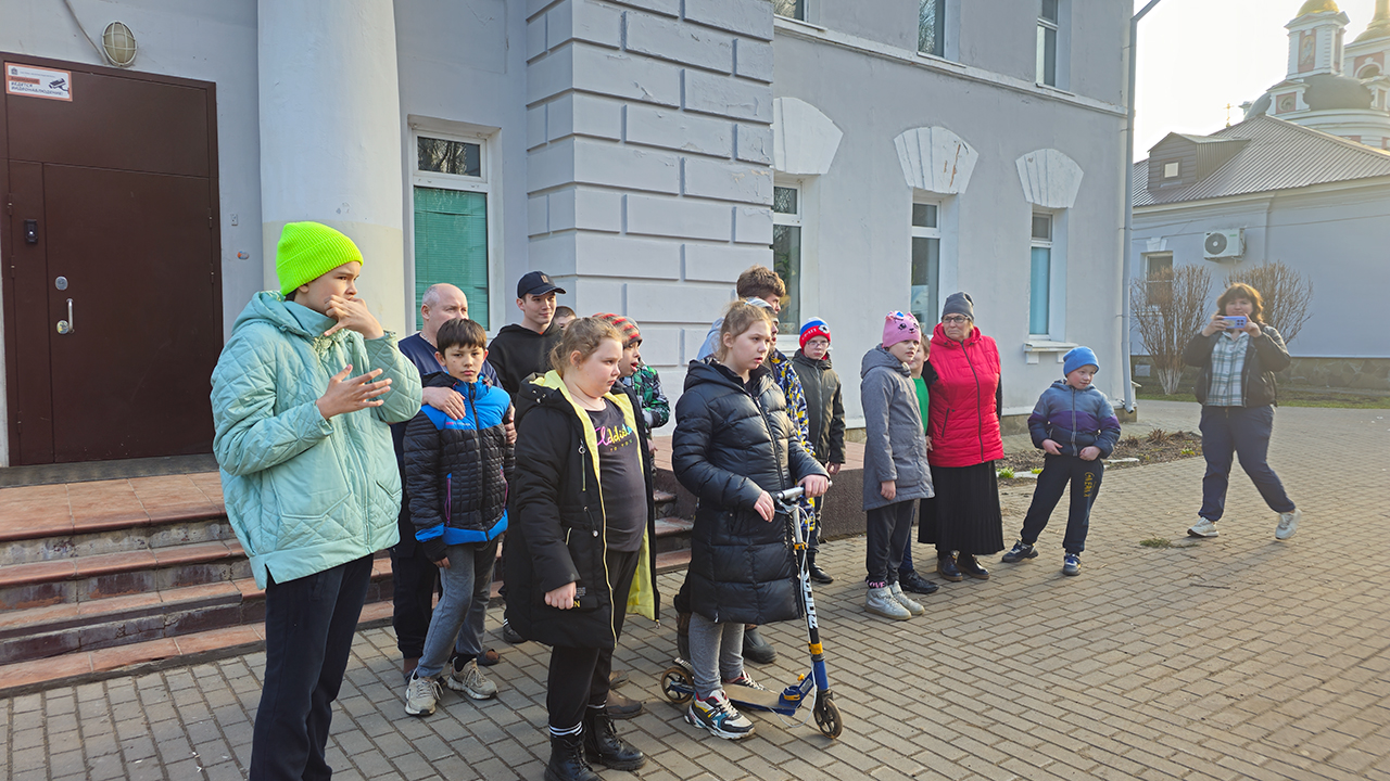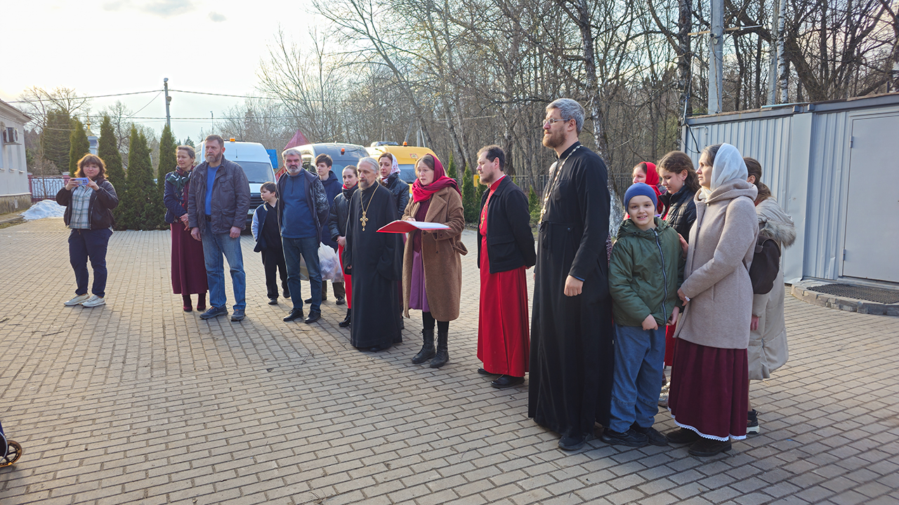 Батюшек сопровождали прихожане и певчие храма. Воспитанников интерната поздравили с Воскресением Христовым. Певчие пропели пасхальные песнопения, а отец Илия приветствовал ребят пасхальным возгласом «Христос воскресе!». Воспитанникам школы подарили пасхальные куличи. Ребята были рады подаркам.