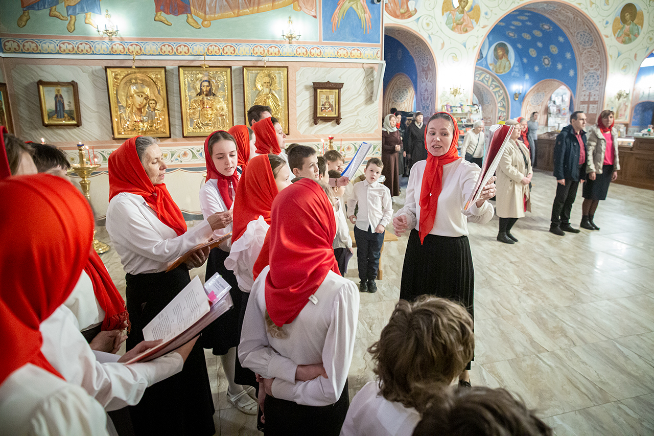За богослужением пели клиросный хор под управлением Татьяны Валерьевны Савченко и хор приходской воскресной школы под управлением Яны Станиславовны Немцевой.