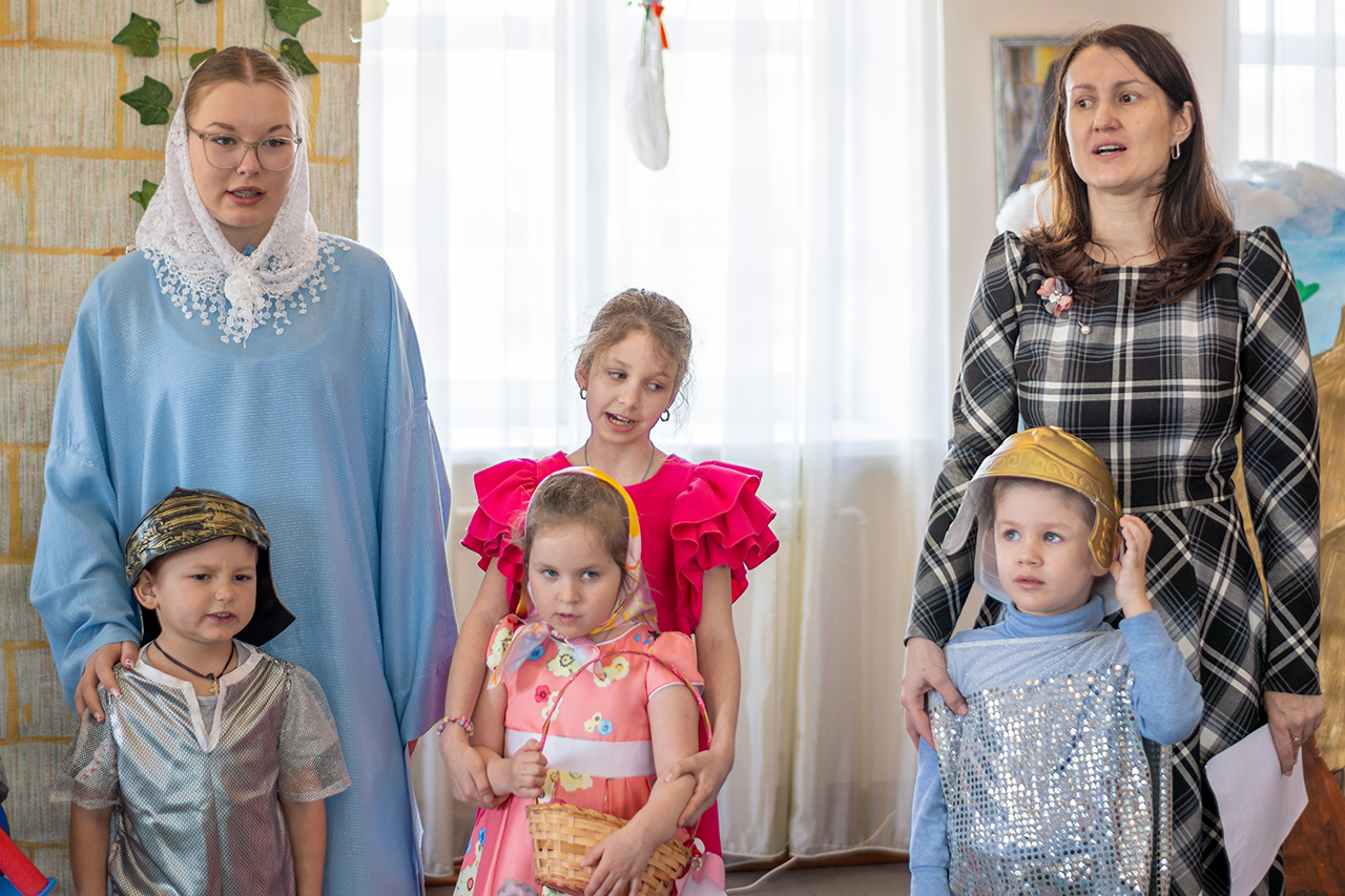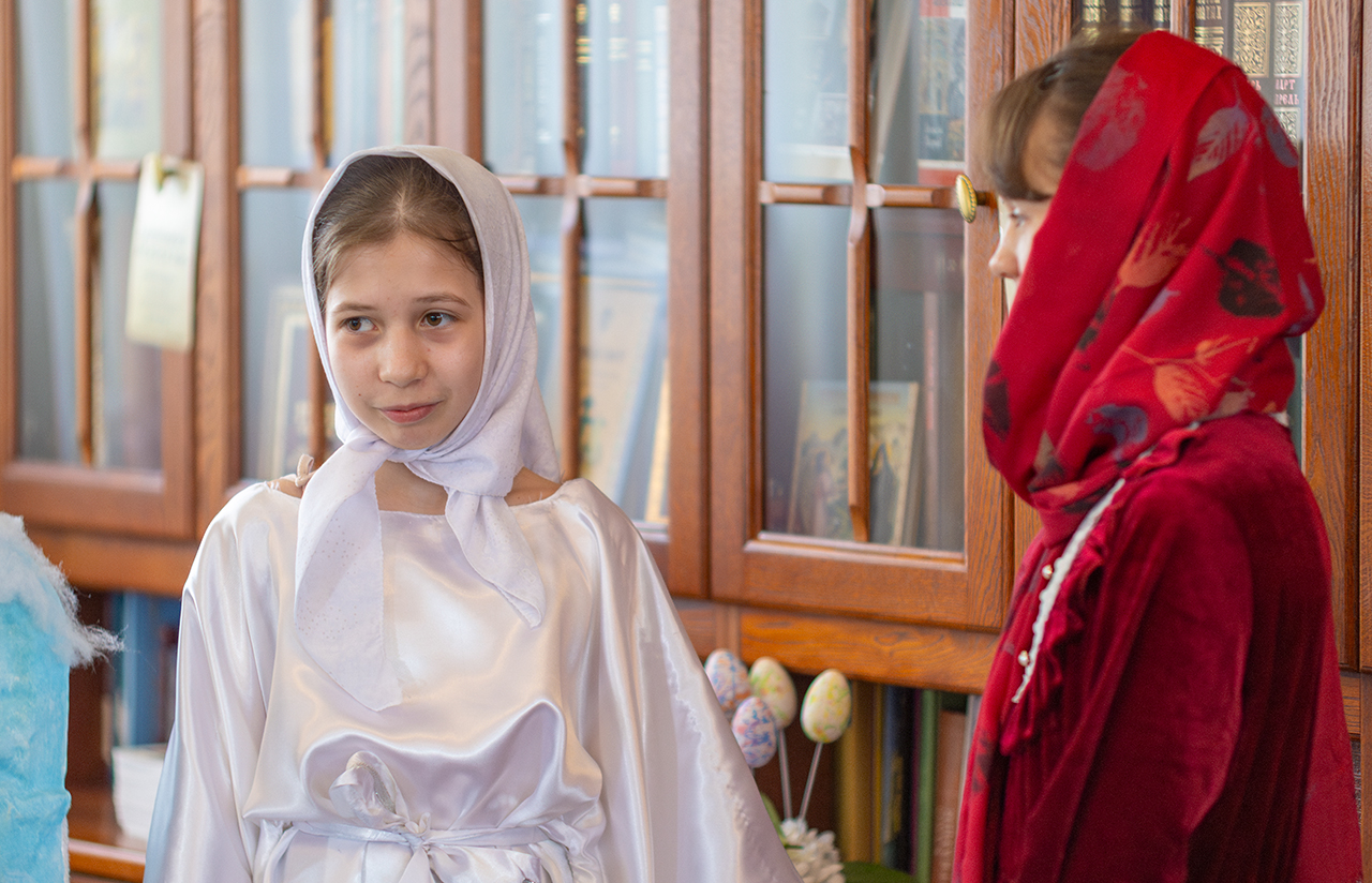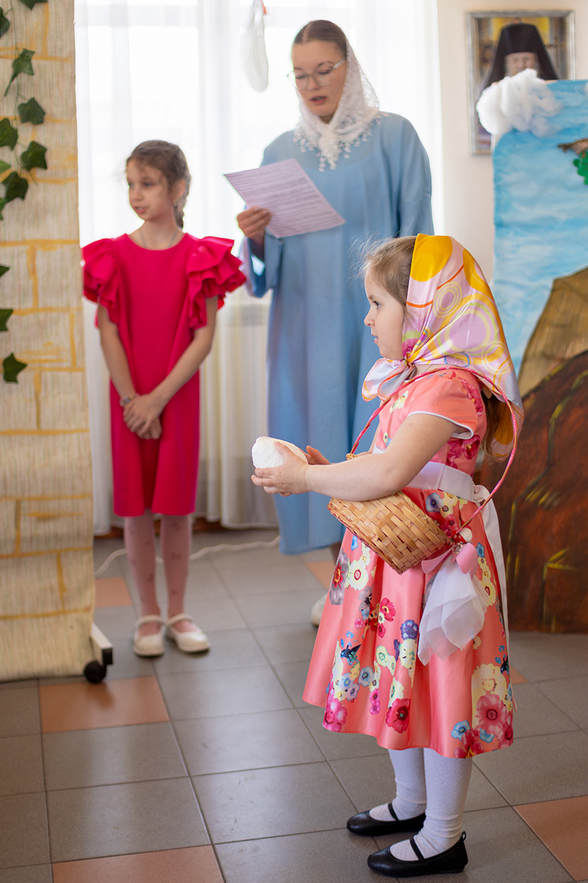 Этот день стал настоящим торжеством веры и творчества. Воспитанники воскресной школы подготовили для гостей две театральные сцены, которые рассказали о событиях Воскресения Христова и подарили зрителям радость соприкосновения с евангельской историей. Праздничную атмосферу дополнили музыкальные номера и проникновенные стихи, в которых дети прославляли Воскресшего Спасителя.