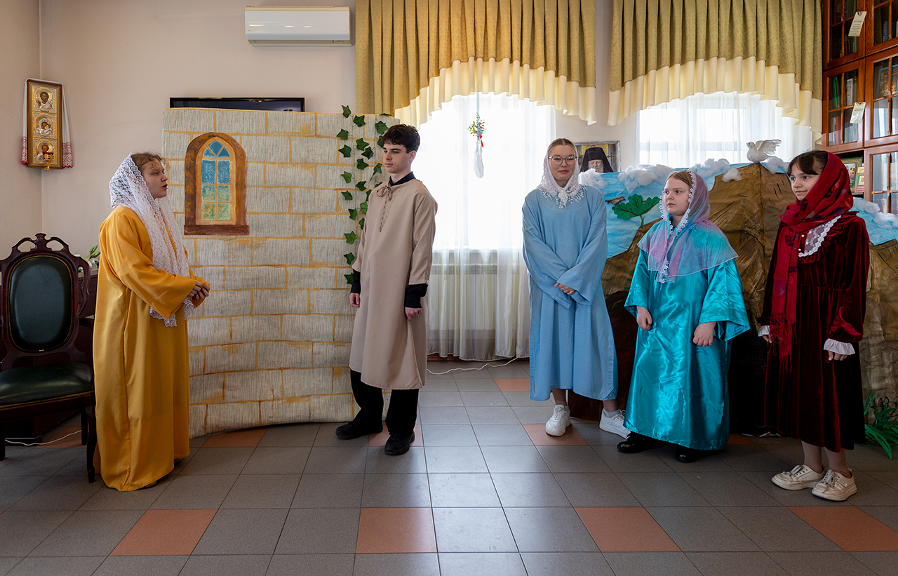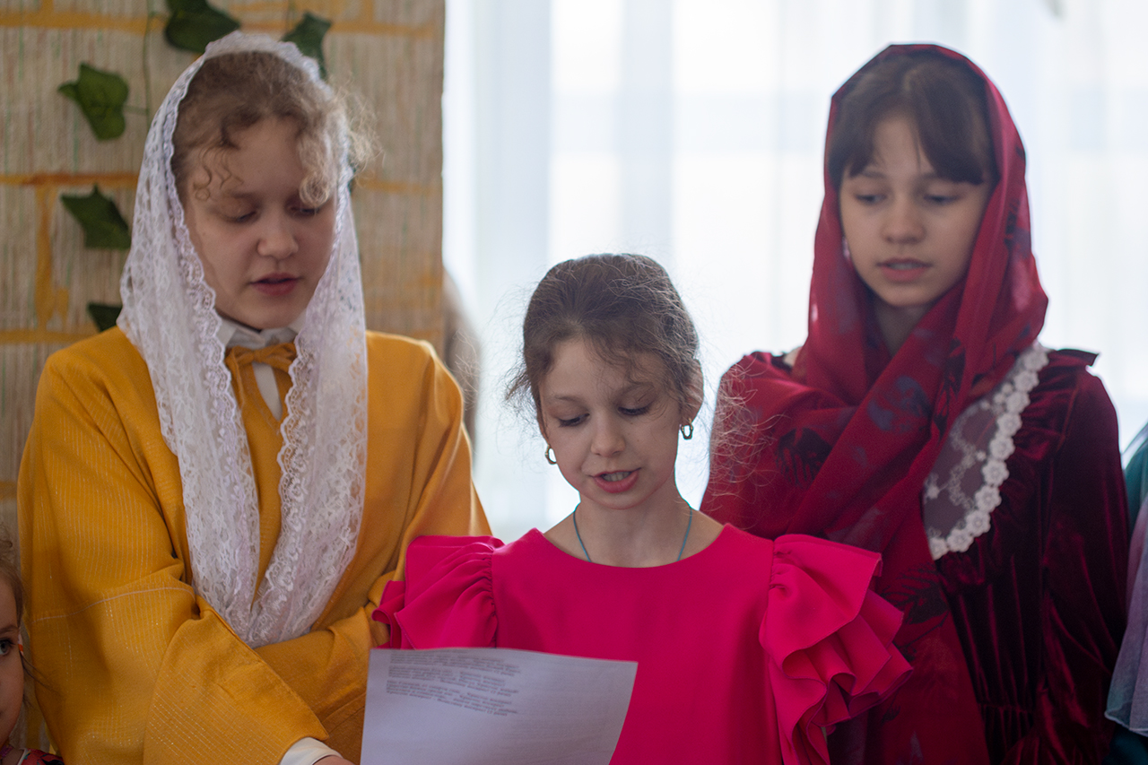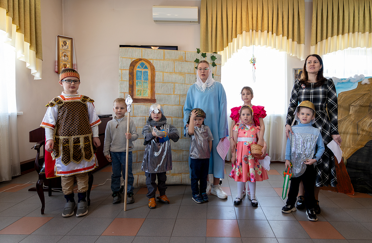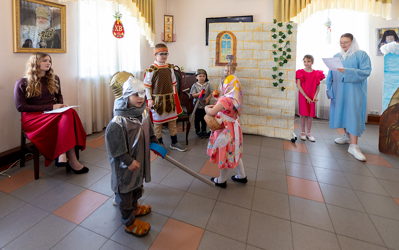 Этот день стал настоящим торжеством веры и творчества. Воспитанники воскресной школы подготовили для гостей две театральные сцены, которые рассказали о событиях Воскресения Христова и подарили зрителям радость соприкосновения с евангельской историей. Праздничную атмосферу дополнили музыкальные номера и проникновенные стихи, в которых дети прославляли Воскресшего Спасителя.